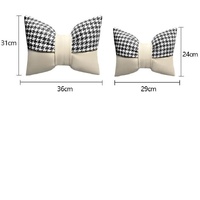 Cute Bowtie Car Headrest Pillow and Waist Cushion Set, Stylish Houndstooth Design, Soft Neck and Back Support for Car Interior