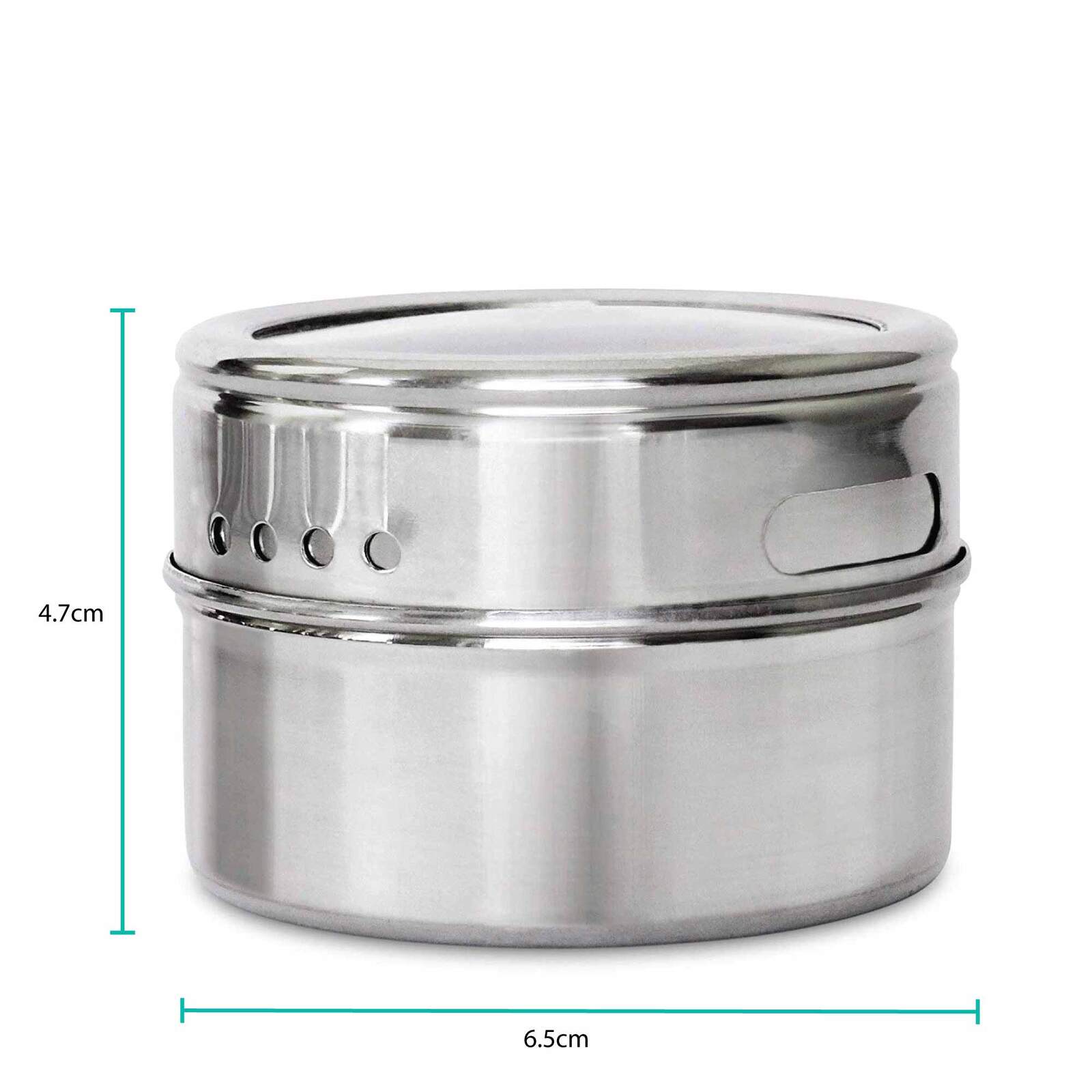 Spice up your cooking with this stainless steel spice jar rack set. The tins feature a shaker transparent lid and magnetic base, and come with a stainless steel plate, ready displayed on any kitchen benchtop. Fill the jars up with your favourite spices or teas for easy application and storage.