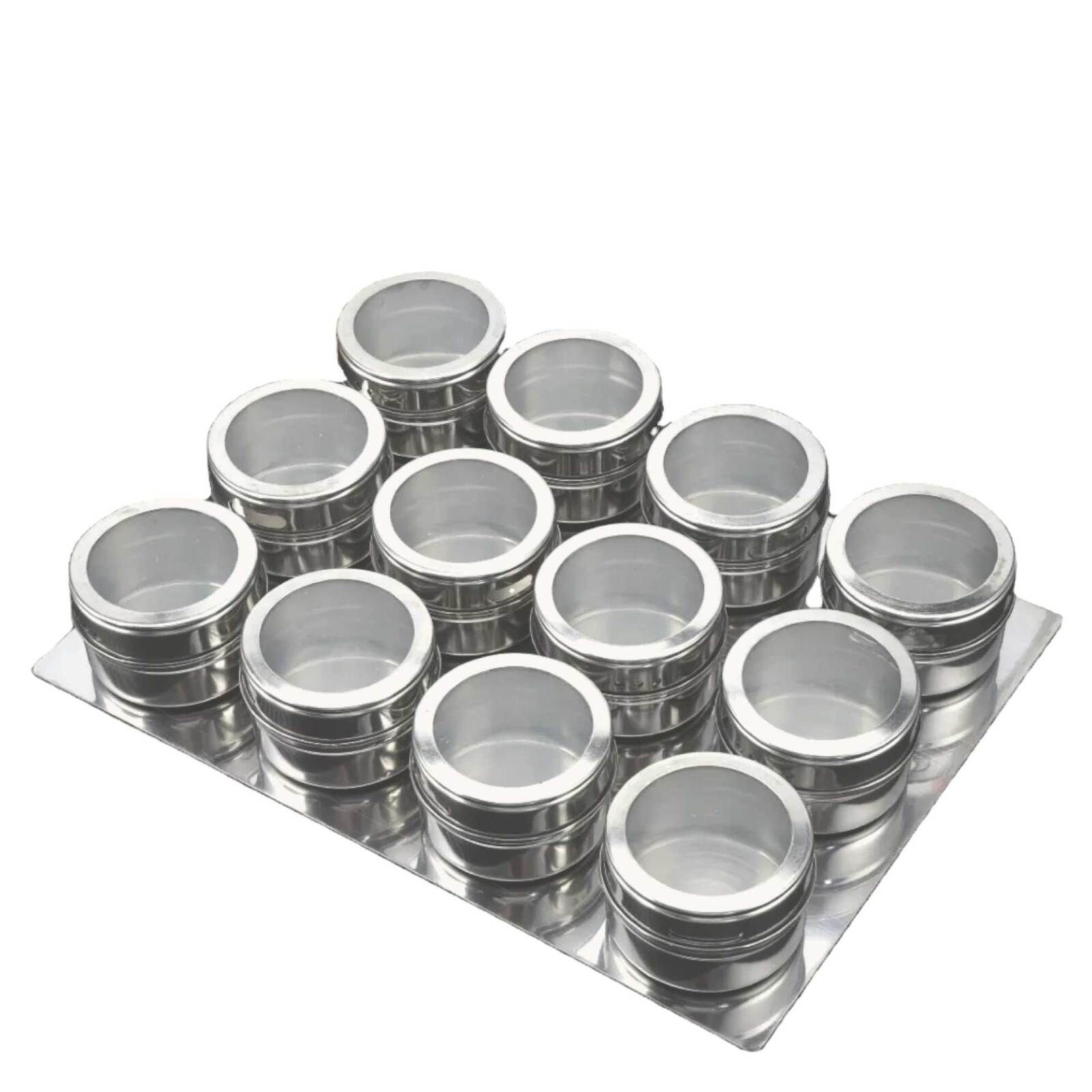 • 12 stainless steel spice jars with magnetic base
