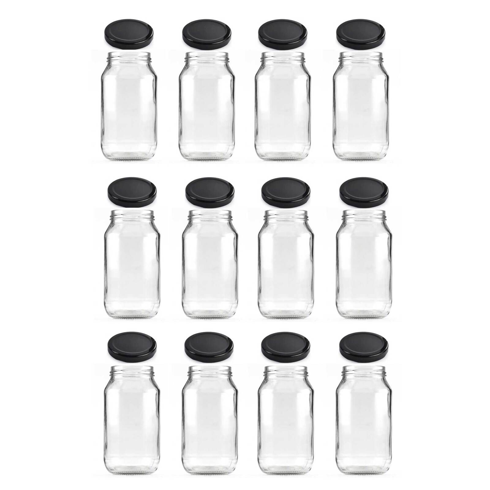 12x 500ml Flint Glass Jars with Black Metal Twist Finish Lids.