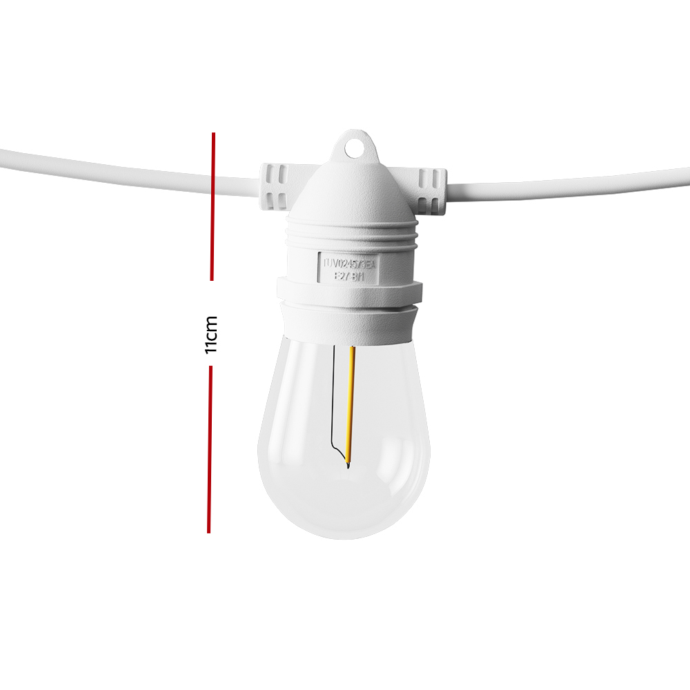 Brighten your home this festive season with a Festoon String Light set. Easily brighten your holiday décor from inside and out with a string of bright festive lights. With an easy connection system for quick assembly, you can get the lights up and running quickly and easily to join in Yuletide cheer. Each bulb is placed 90cm equally apart from each other throughout its length for an even distribution of illumination and brightness. The lights can be used both indoors and outdoors to brighten up the festivities all year round. Illuminate your home with the bright and mellow glow of the Festoon String Light set.