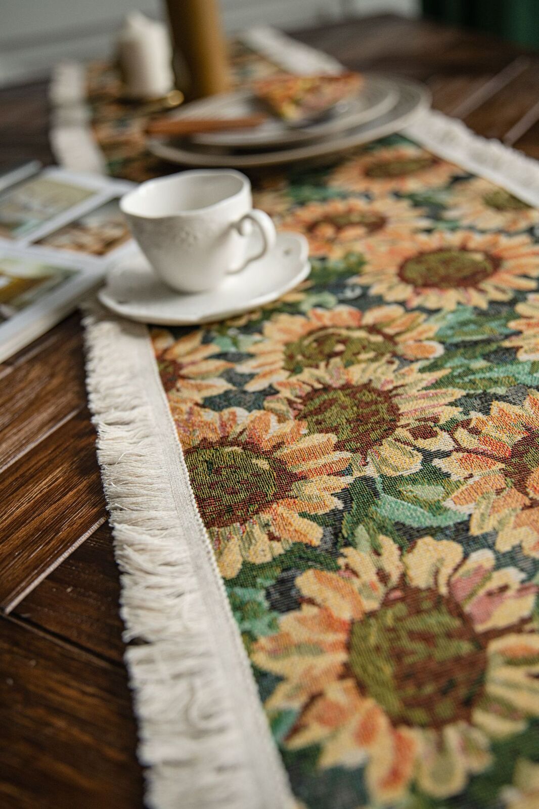 2 PCS Sunflower Table Runner with Fringe - Jacquard Woven Cotton Blend (30x120cm)
