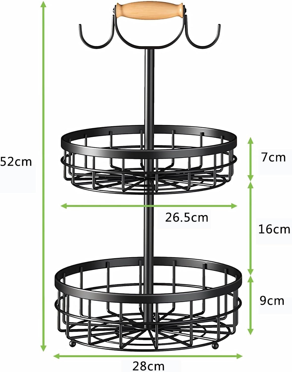 - SAVE SPACE: Maximize your kitchen counter space with this 2-tier fruit basket featuring dual banana hooks. Perfect for storing fruits, vegetables, bread, potatoes, onions and snacks in an organized way.
