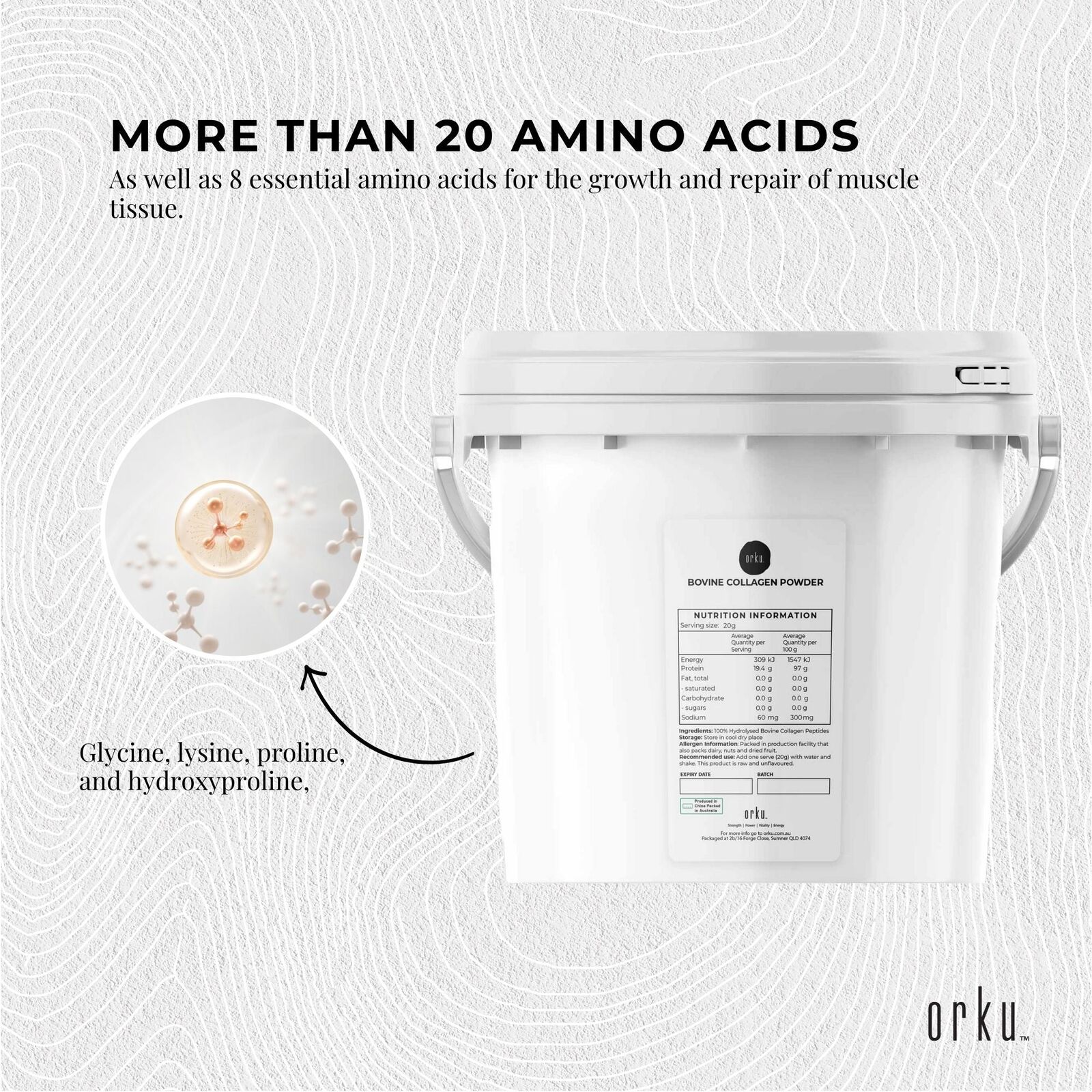 Orku Bovine Collagen Hydrolysate is a bioactive peptide protein that supports the body's own collagen found in bones, joints, skin, hair, and nails.