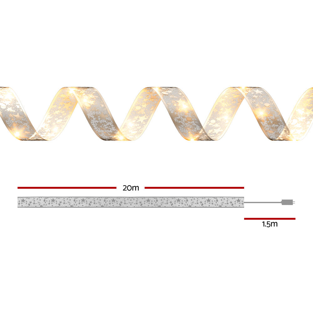 20M Christmas Lights Ribbon Fairy Light 200 LED Warm Jingle Jollys