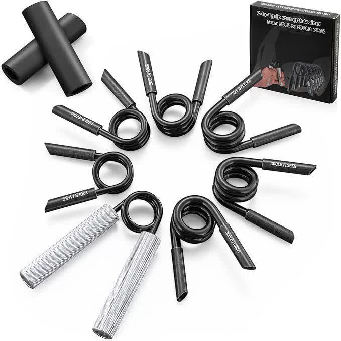This versatile 4-in-1 grip strength trainer set is perfect for enhancing hand, wrist, and finger strength. Whether you're working on rehabilitation or general fitness, this tool is designed to help improve grip, forearm strength, and endurance with adjustable resistance from 50lbs to 200lbs.