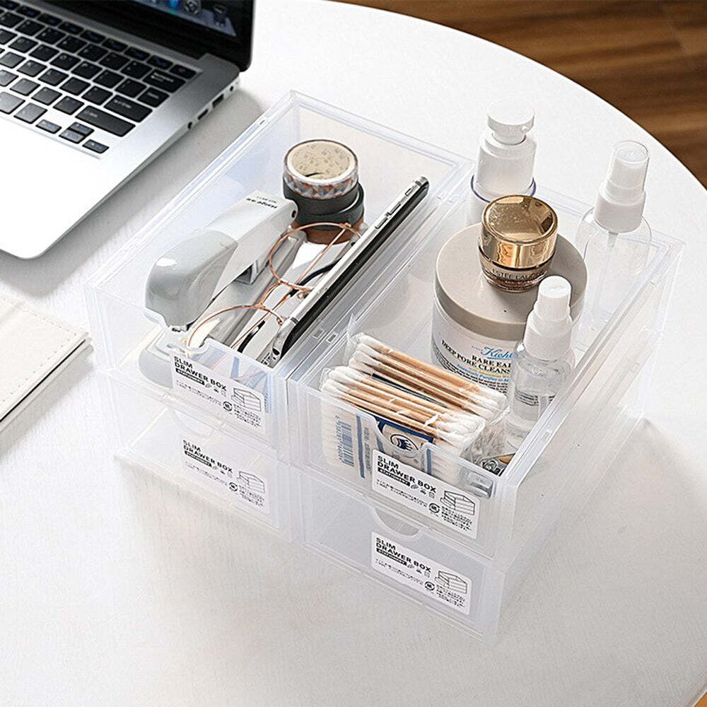 Stylish and Sturdy - The modern design with classic white or clear drawer makes the storage box looks more delicate. This desktop organizer drawer is made of durable and sturdy PP material, ensures last for a long time use. Smooth surface that can be easily cleaned.