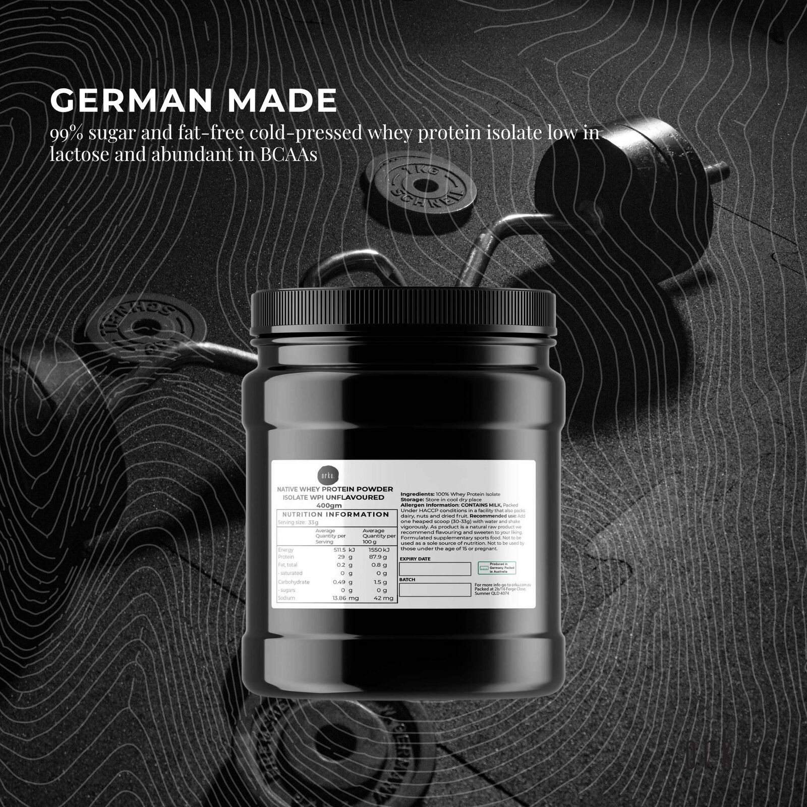 400g Native Unflavoured Whey Protein Isolate Powder - Shake WPI Supplement Jar