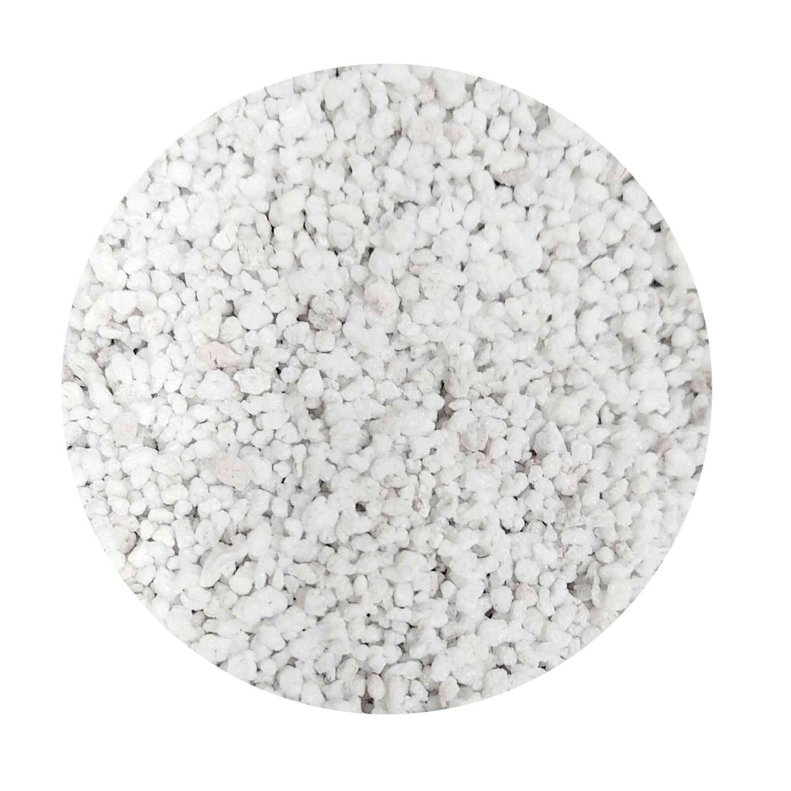 Medium Perlite is a light, hard, aerated, white mineral, formed from volcanic glass, used in potting mixes to add open and porous drainage, provide aeration to plant roots and hold oxygen, a little moisture and nutrients from soluble fertilisers.