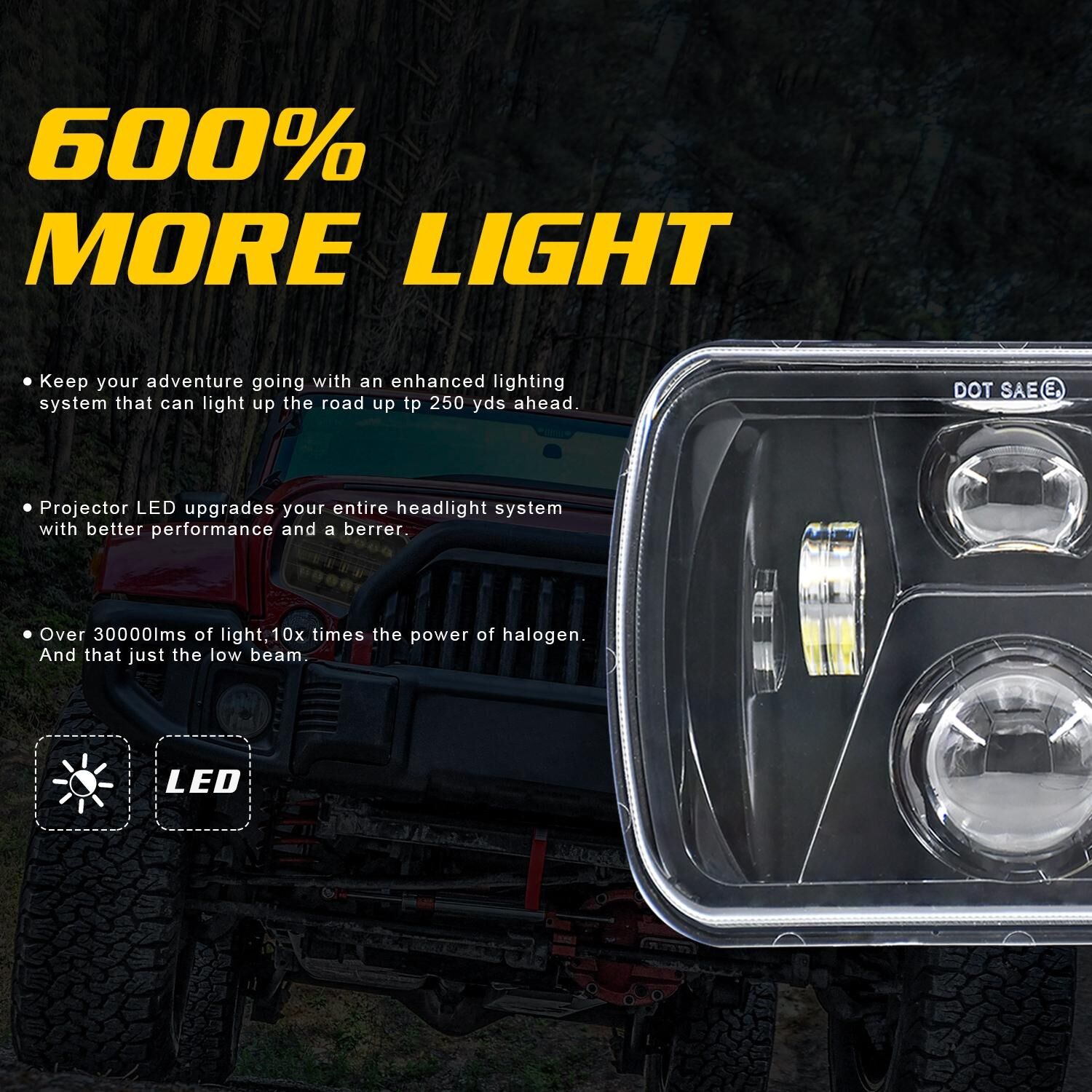 • 1 x 7 Inch 5X7 / 7X6 H4 Dc 9V - 30V 3500Lm 35W Car Square Shape Led Headlight Lamps For Jeep Wrangler