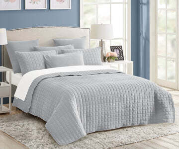Please note that our website images were taken on display beds which are smaller and not equivalent to any standard size bed. Our comforters and quilts will cover the surface of the bed but will not extend to the floor like the images shown.