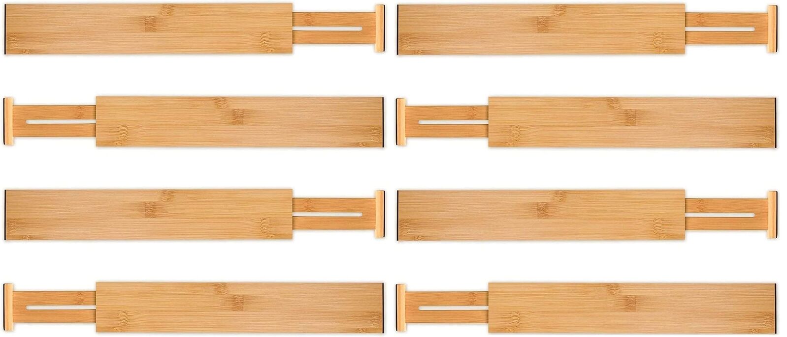 8 Pack Bamboo Adjustable Kitchen Drawer Dividers (Large, 44-55 cm)