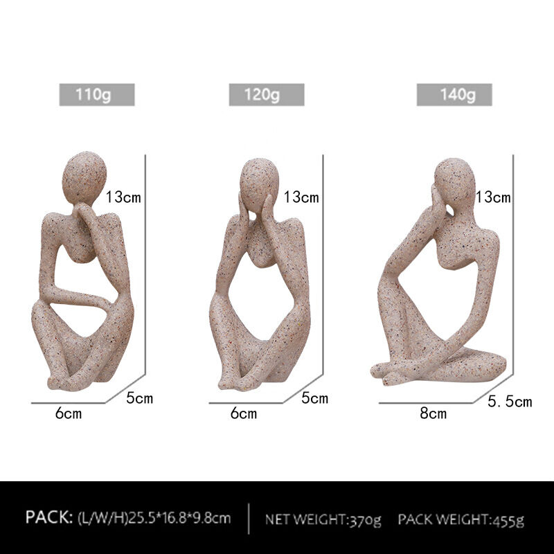 Abstract Thinker Sculpture Set - Elevate your home decor with this striking set of abstract thinker sculptures in a coffee finish. Crafted from high-quality resin, these modern art figurines depict thought-provoking poses, perfect for adding a touch of sophistication to any room. Each piece measures 13cm (5.1in) in height, with individual weights of 110g, 120g, and 140g. Ideal for living rooms, offices, or study spaces, this set brings an artistic flair to your decor.