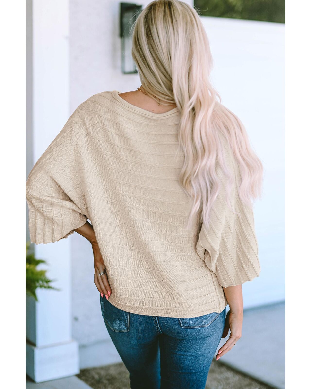 • Wide neckline and dolman sleeves