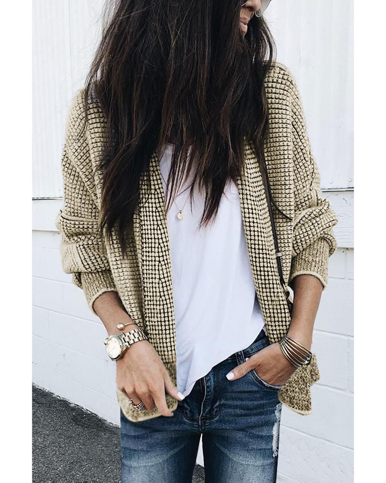 • Our styles are designed with a trendy fitted look in mind following an international size standard. For the best fit we suggest choosing one size up from your usual. Be sure to check our sizing chart to find your perfect match! Chic casual cardigan with an open front Classic plaid graphic and contrast trim Soft fabric with a shift cut for comfort Versatile