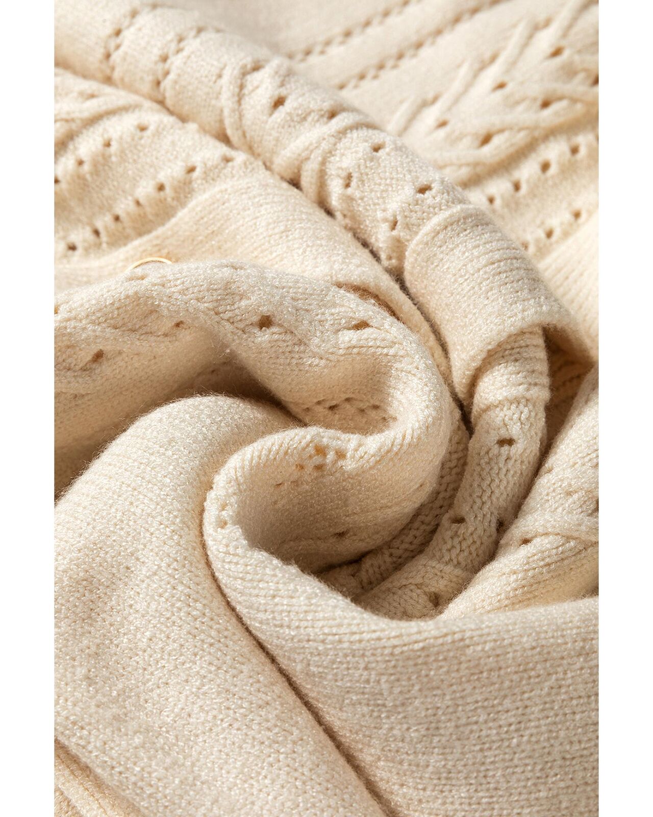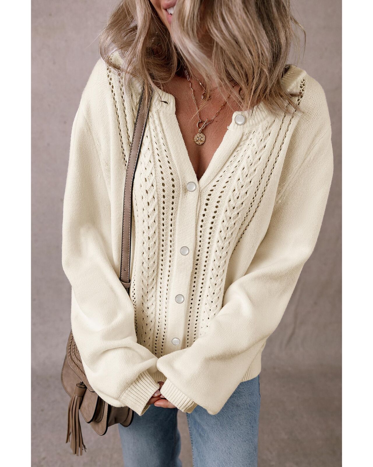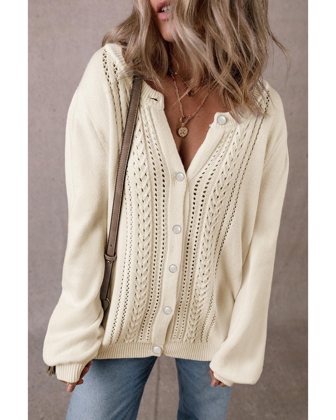 • Apricot pleated sleeve hollow detail button sweater cardigan