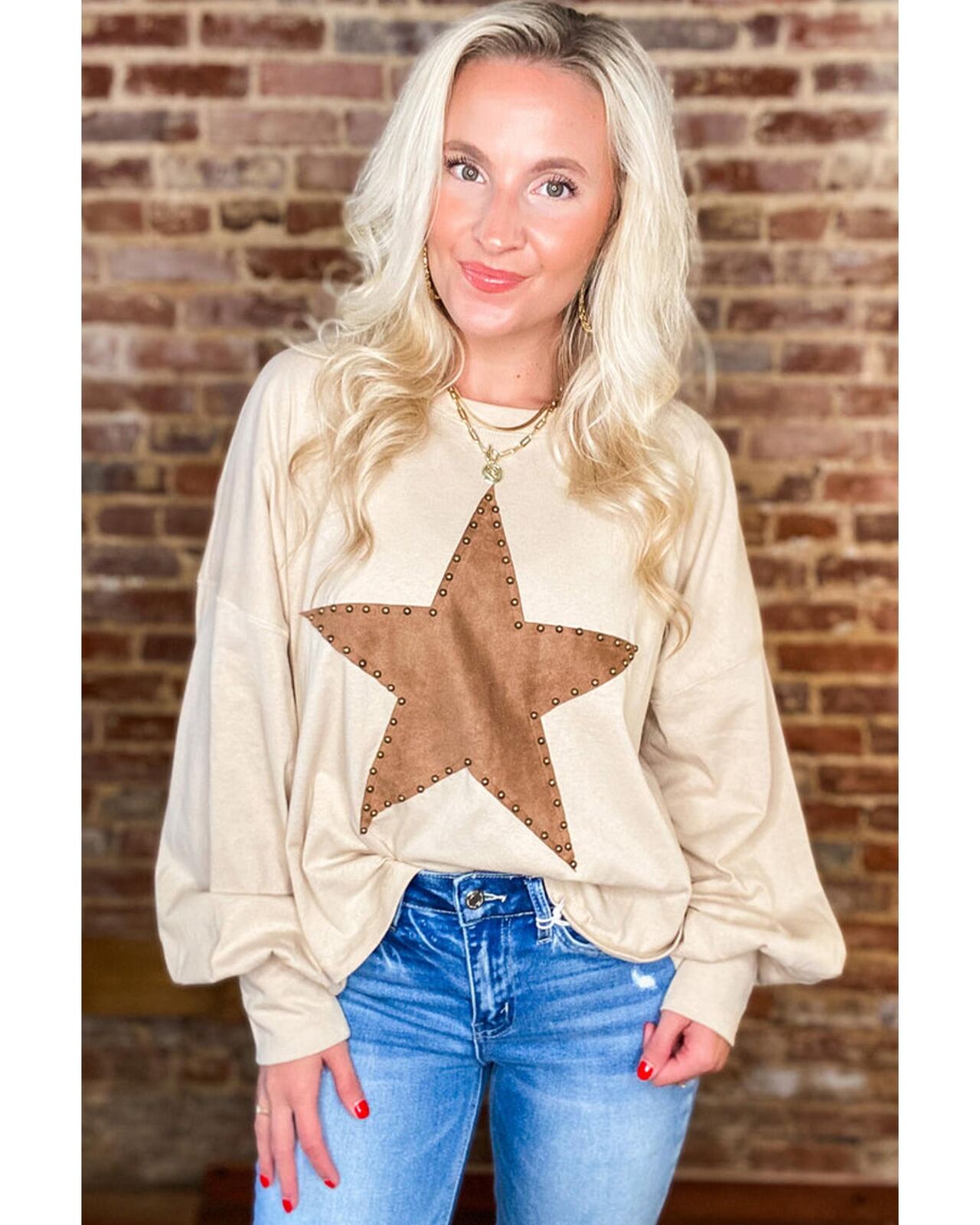 • Apricot Studded Star Graphic Oversized Long Sleeve Top