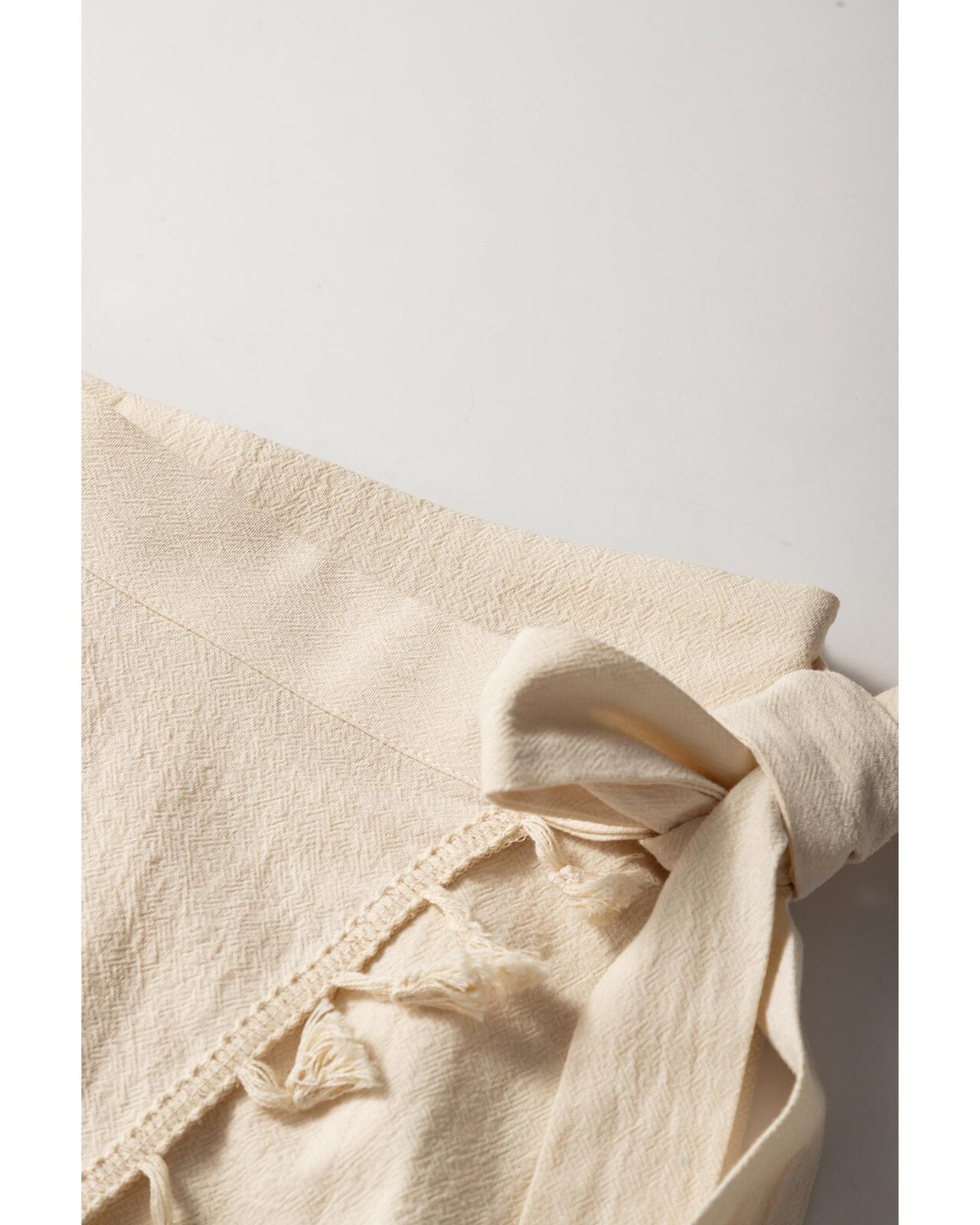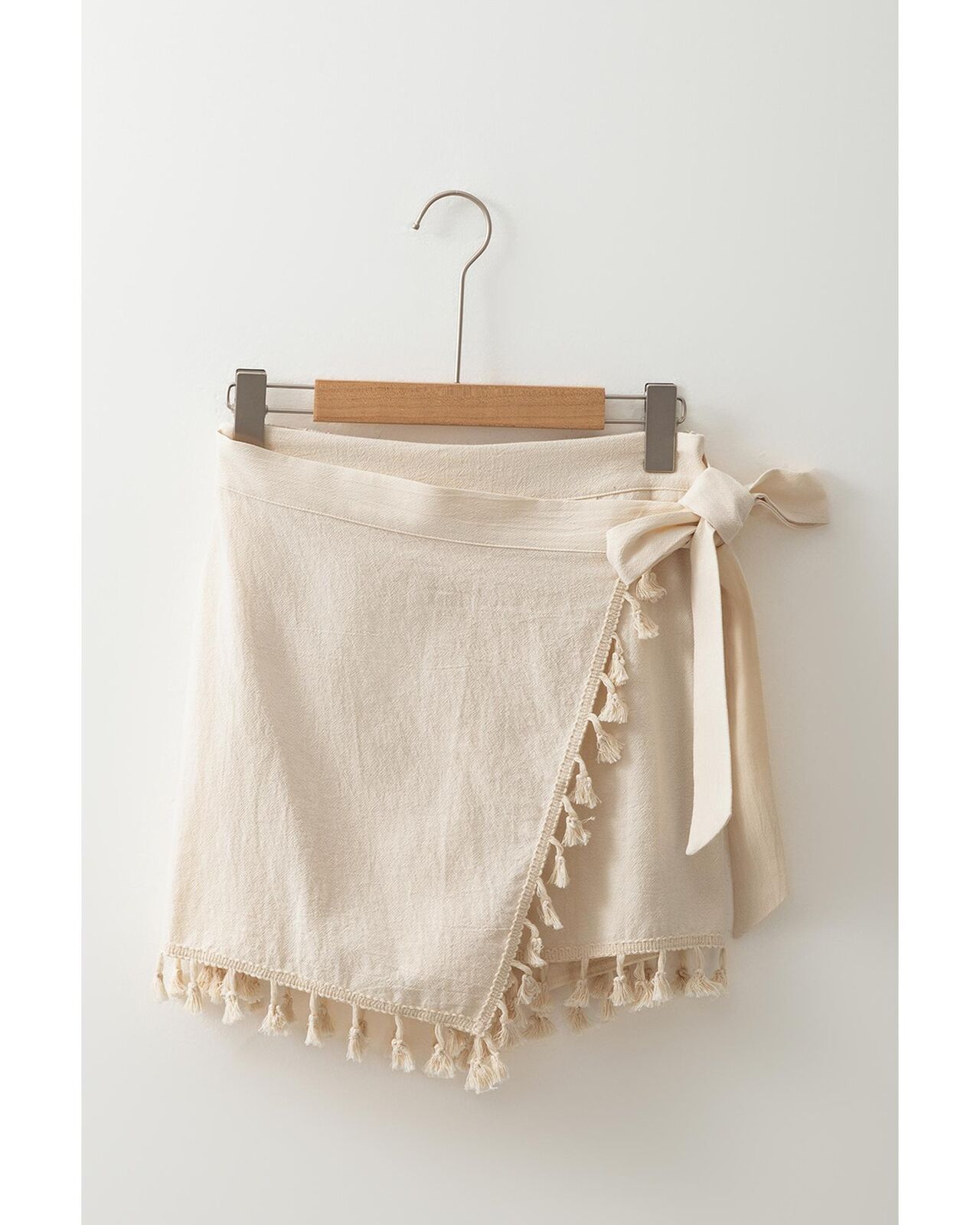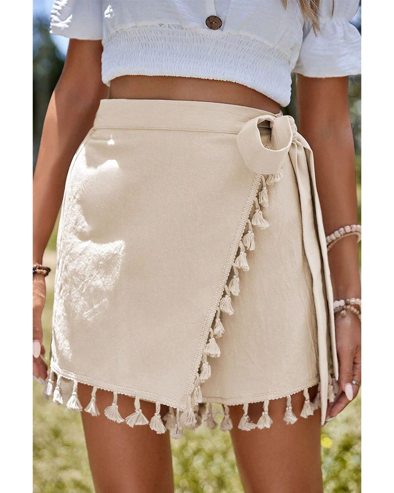 • Apricot Tassel Trim Wrap Knot Side Bohemian Style Mini Skort