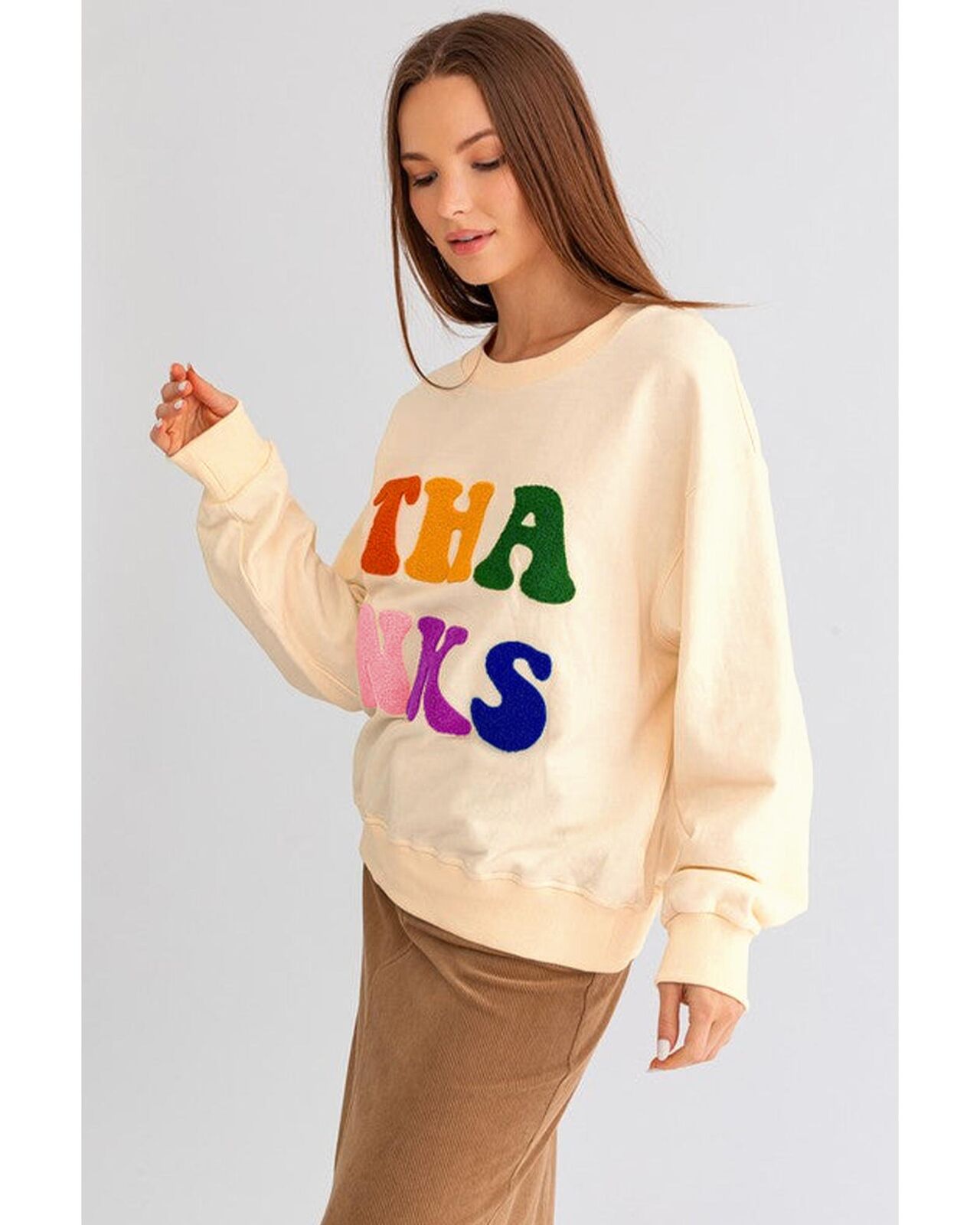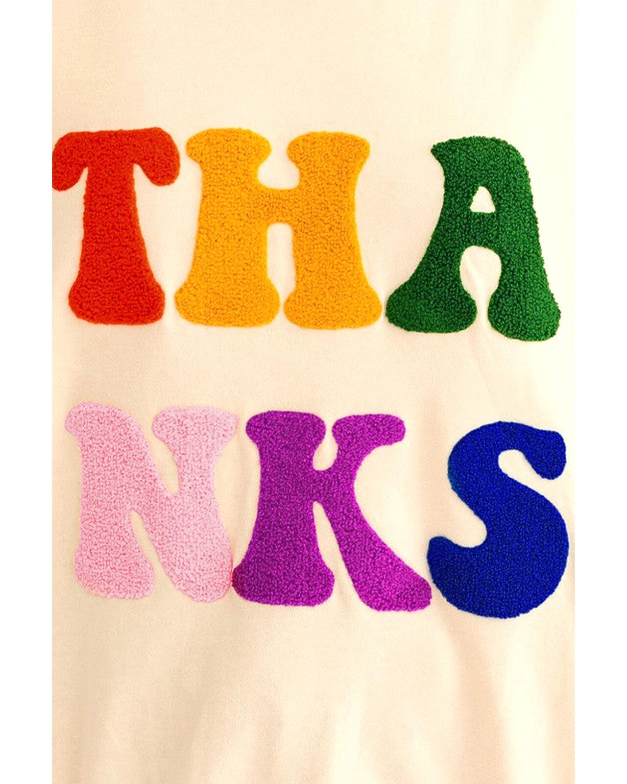 • Chenille embroidered THANKS graphic on the front