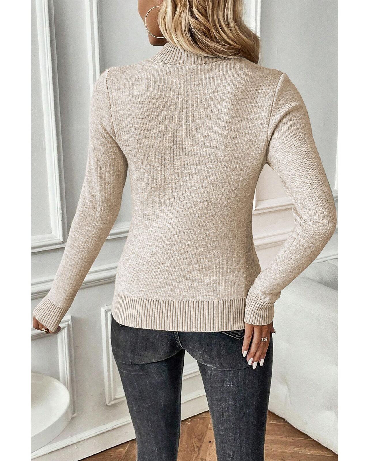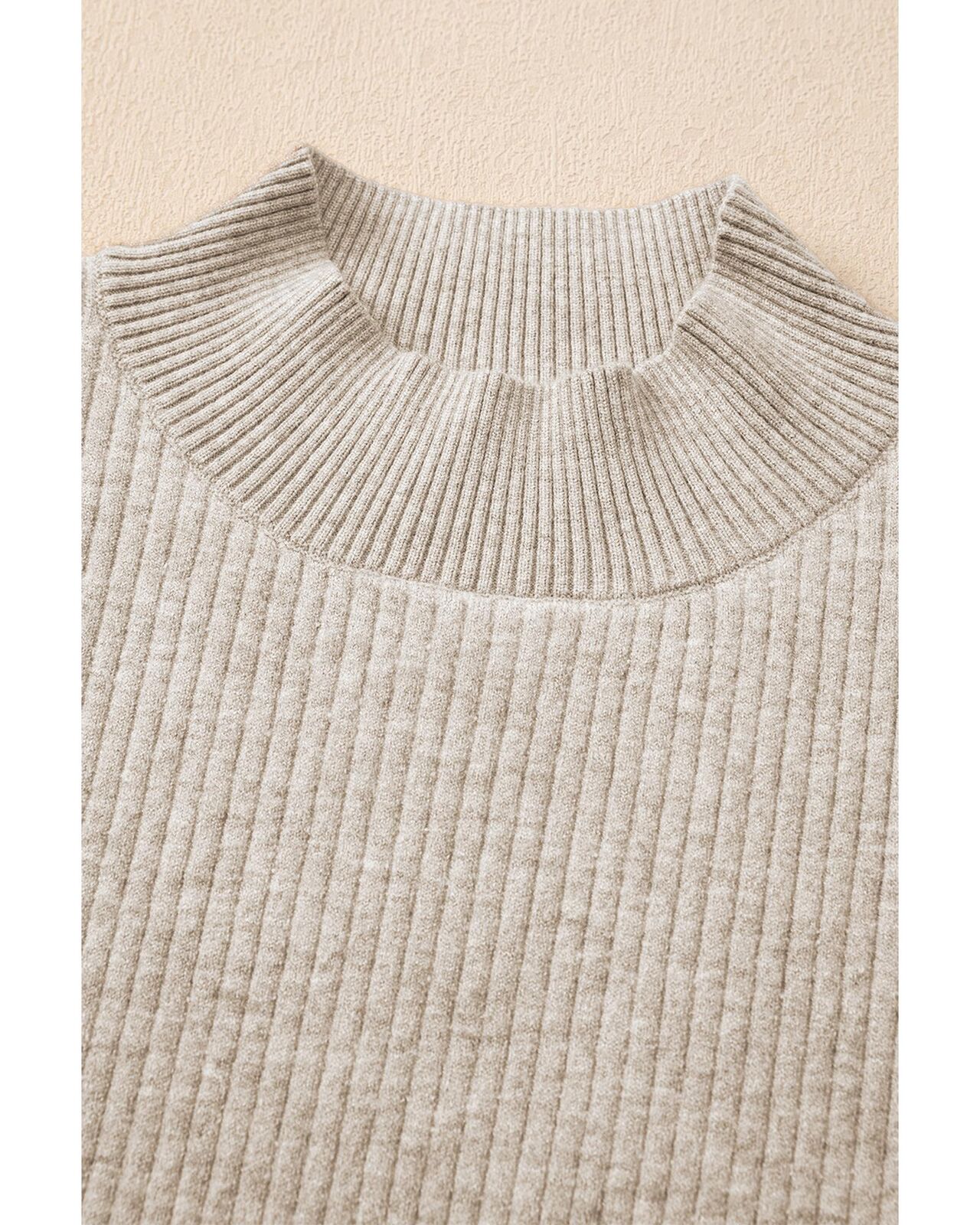 • Apricot Thermal Lined Ribbed Knit Mock Neck Sweater