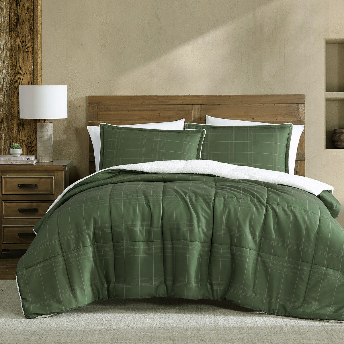 Featuring a minimal stitch print in khaki, taupe, cream, red, and white hues, this 3 Pcs Cammy Deep Khaki Comforter Set with Sherpa Reverse Queen/King exudes effortless style with this khaki base adorned with soft natural and rust accents. Cammy features a sherpa reverse, perfect for snuggling up the this season. This 3-piece set is perfect for chilly nights or simply adding a soft touch to your bedroom. It is comfort and style, all in one easy update. It is made from quality polyester fabric for long lasting use.