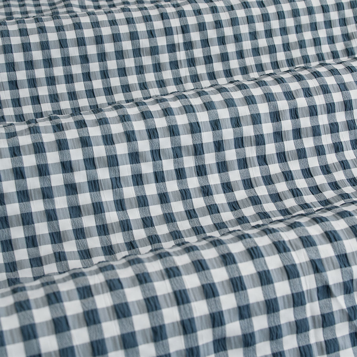 Crafted in the traditional gingham seersucker design in teal and white hues, this Ardor Rowe Teal Textured Seersucker Quilt Cover Set brings a classic flair to your bedroom. The iconic gingham pattern evokes a sense of cottage nostalgia. Transform your space into a cosy retreat with the Rowe quilt cover set. Made from quality polyester fabric for long lasting use.