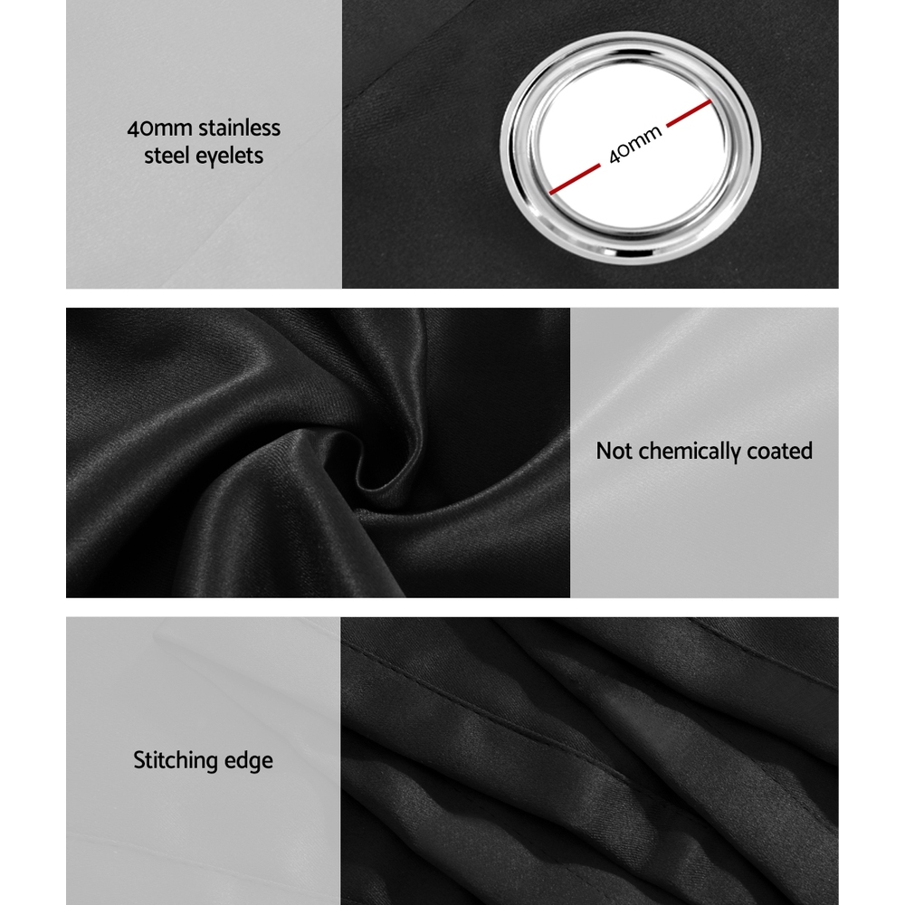Artiss 2X 132x160cm Blockout Sheer Curtains Black