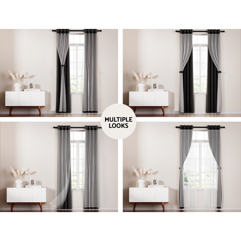 Artiss 2X 132x213cm Blockout Sheer Curtains Black