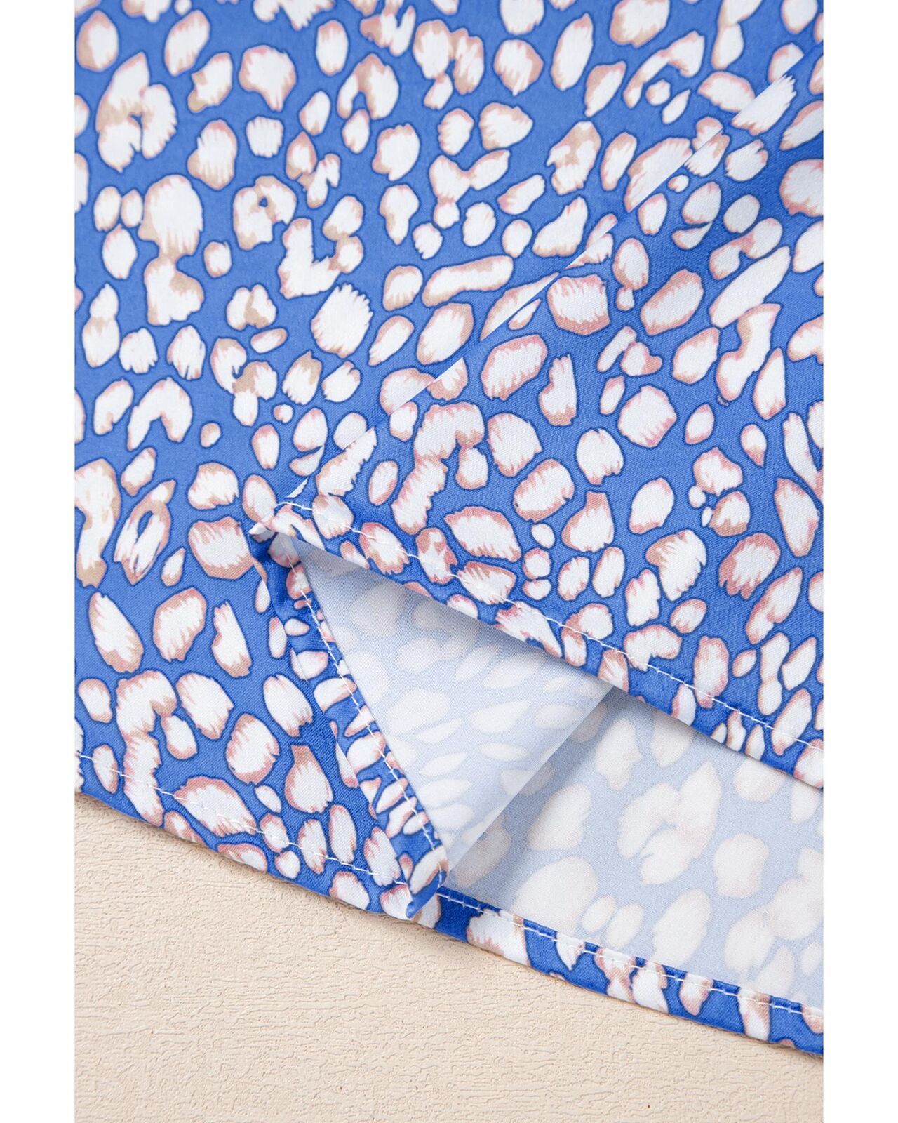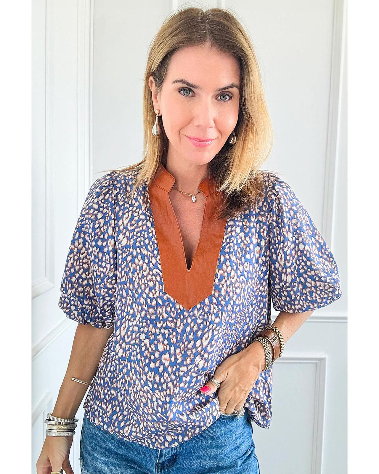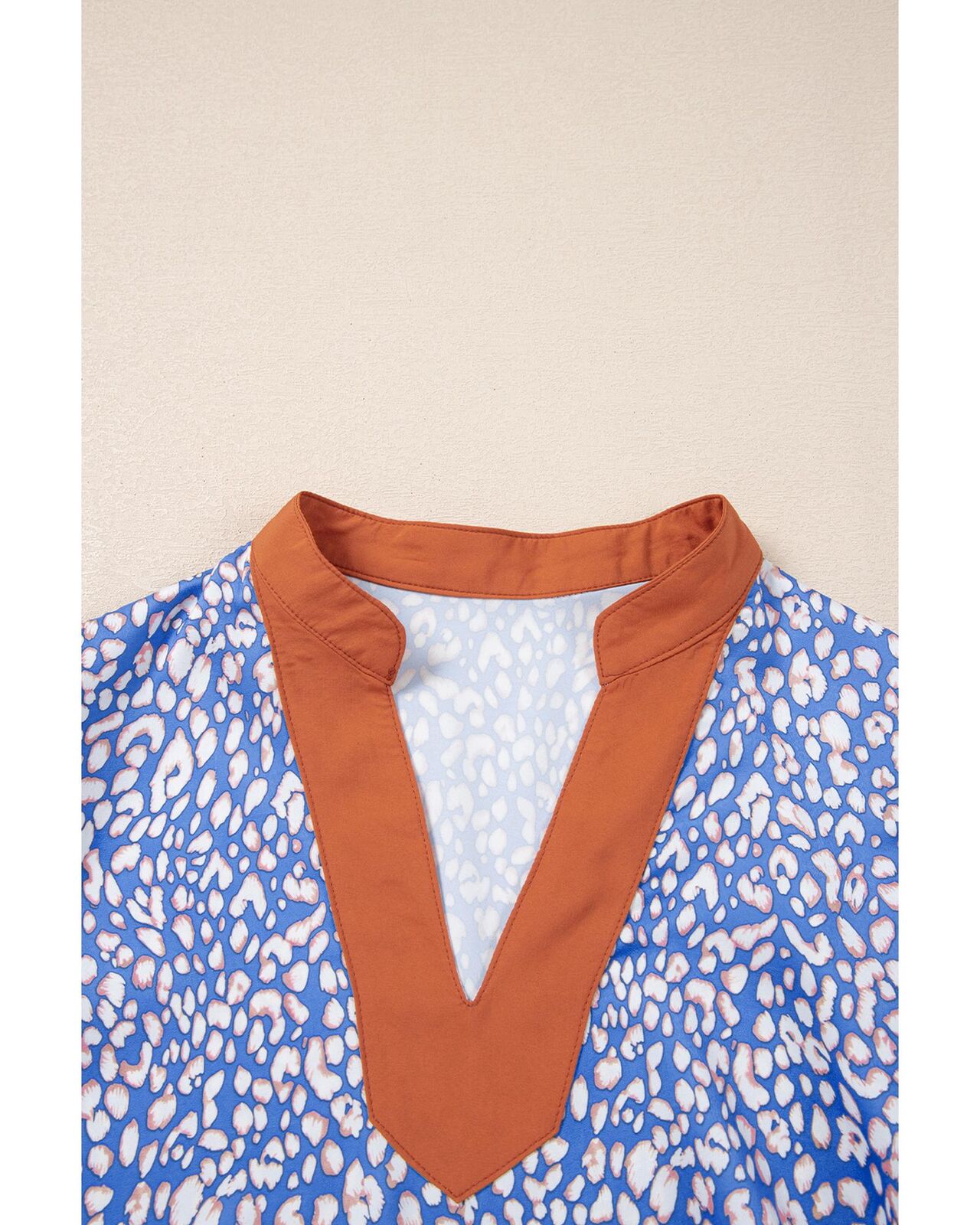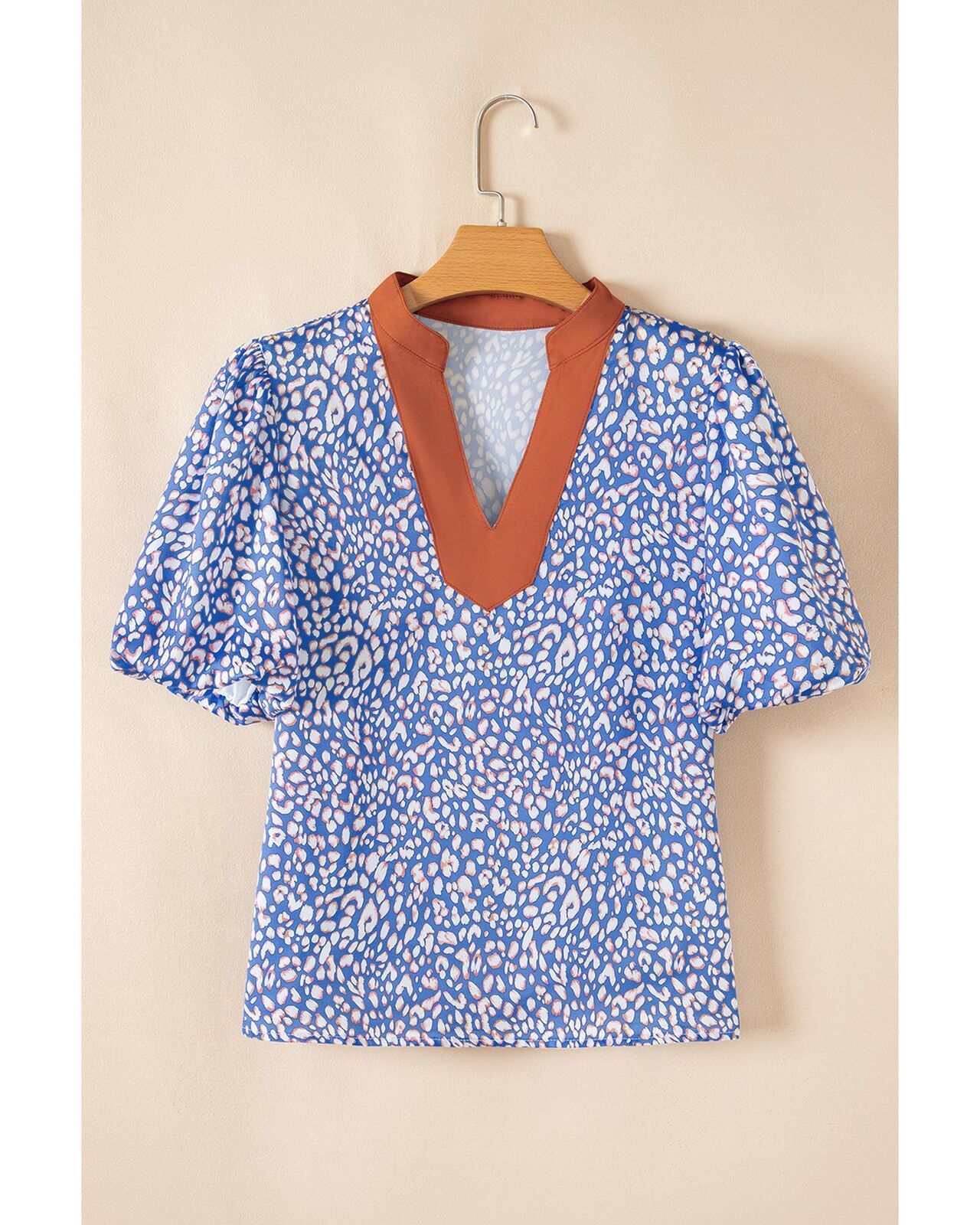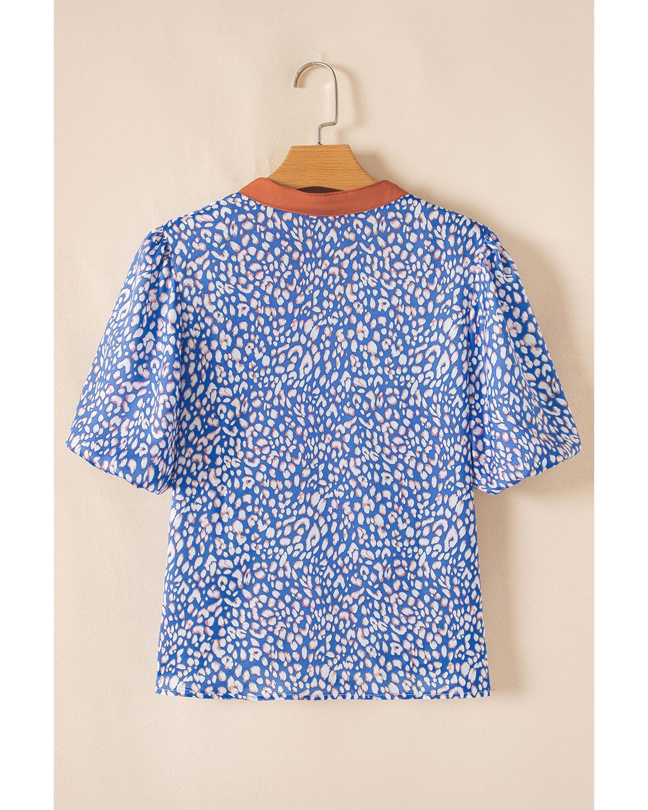 • Ashleigh Blue Leopard Print Spot Contrast V Neck Half Puff Sleeve Shirt