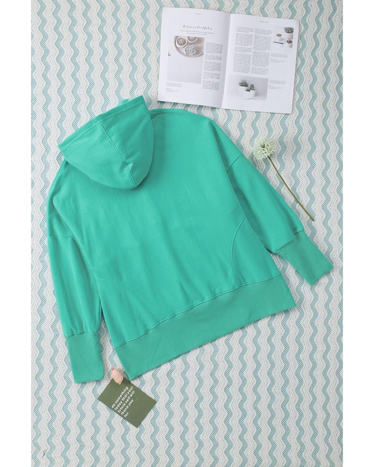 • Turquoise Batwing Sleeve Pocketed Henley Hoodie