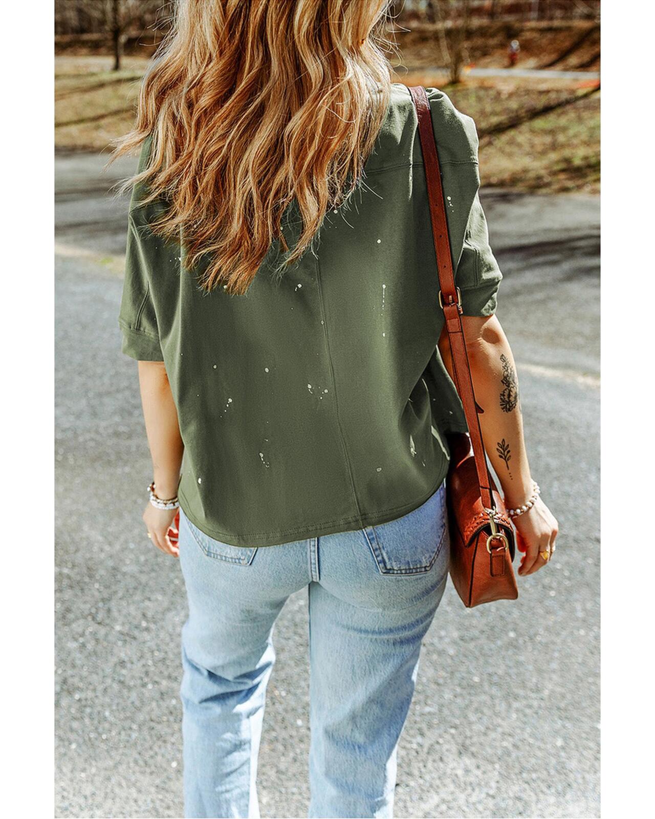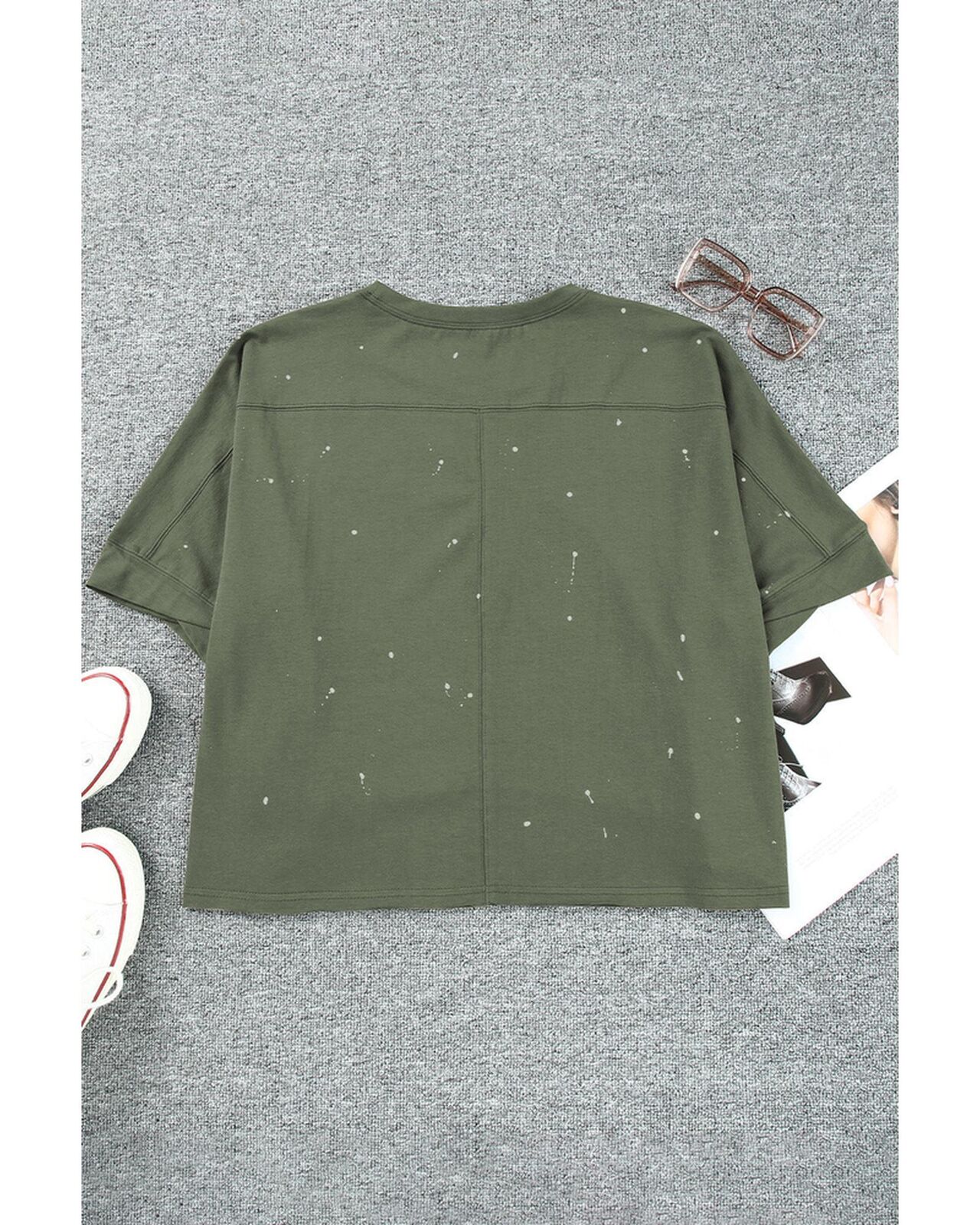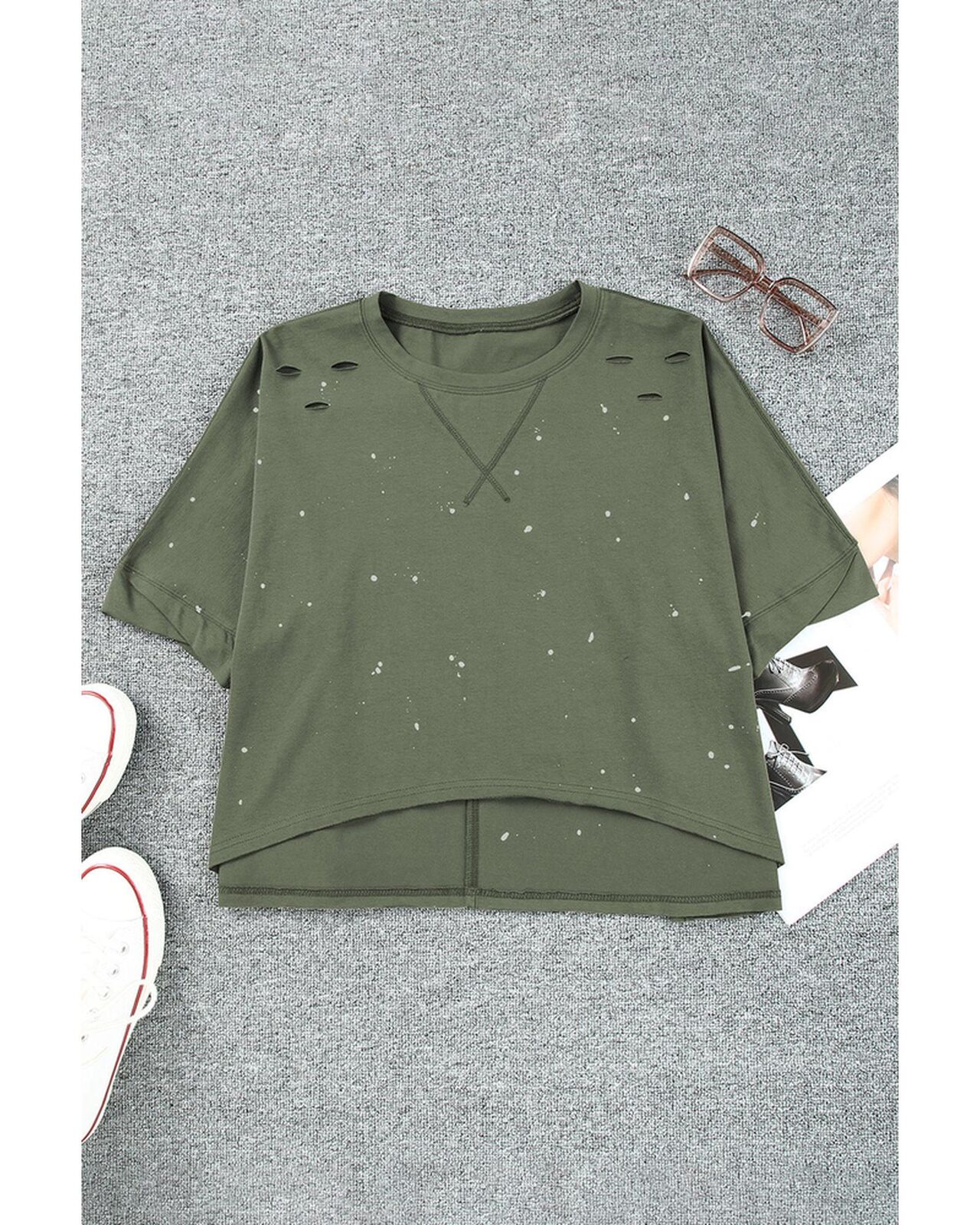 • Stylish and edgy Distressed Bleached Asymmetric Hem Short Sleeve Top