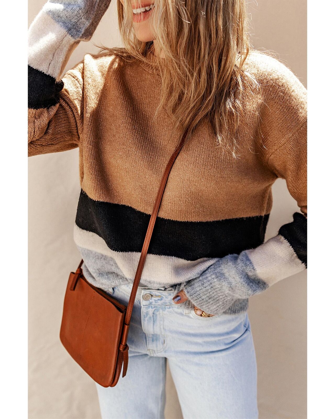 • Stylish color block and stripe design