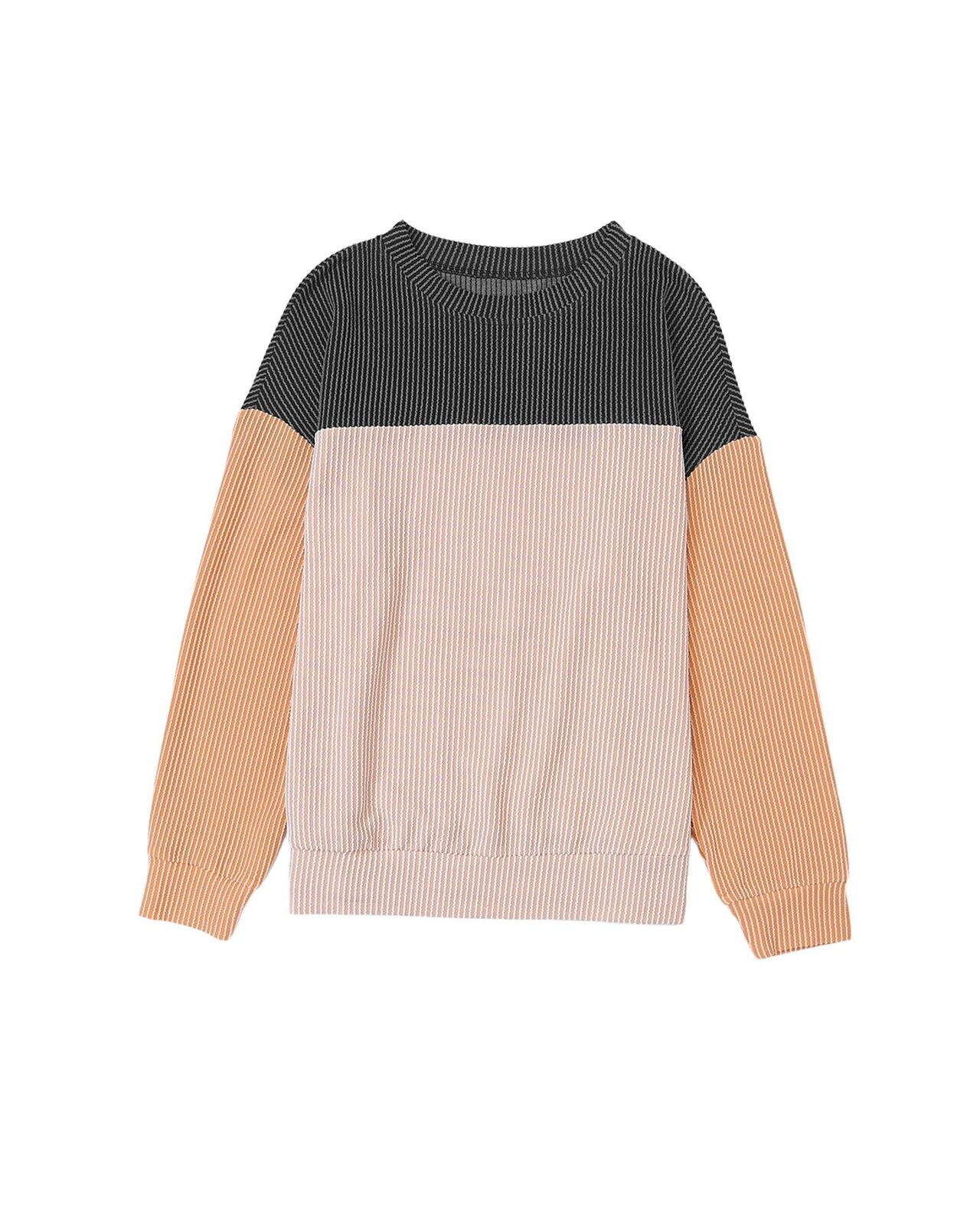 • Black Color Block Long Sleeve Ribbed Loose Top