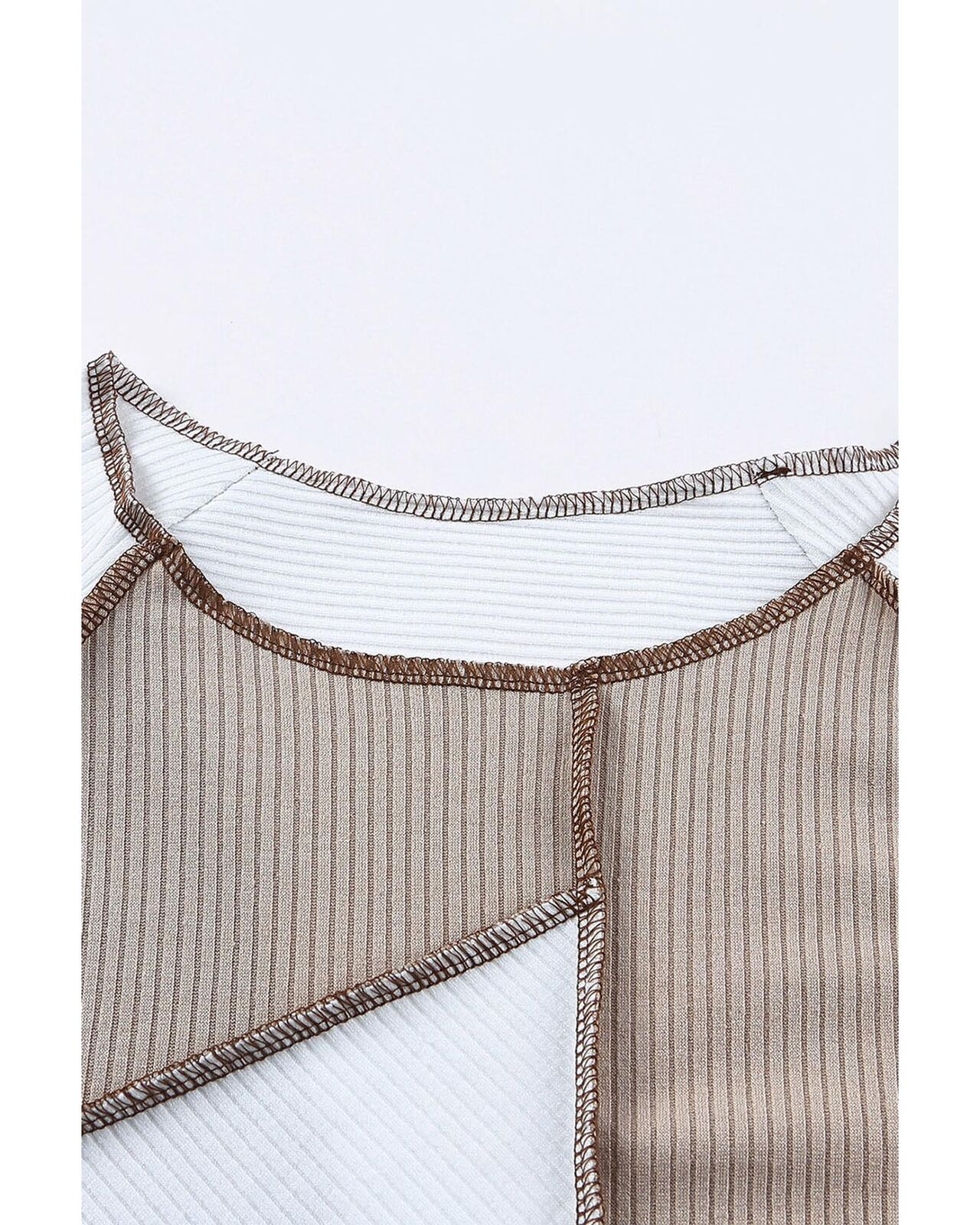 • Luxurious irregular color block seaming trim rib knit top