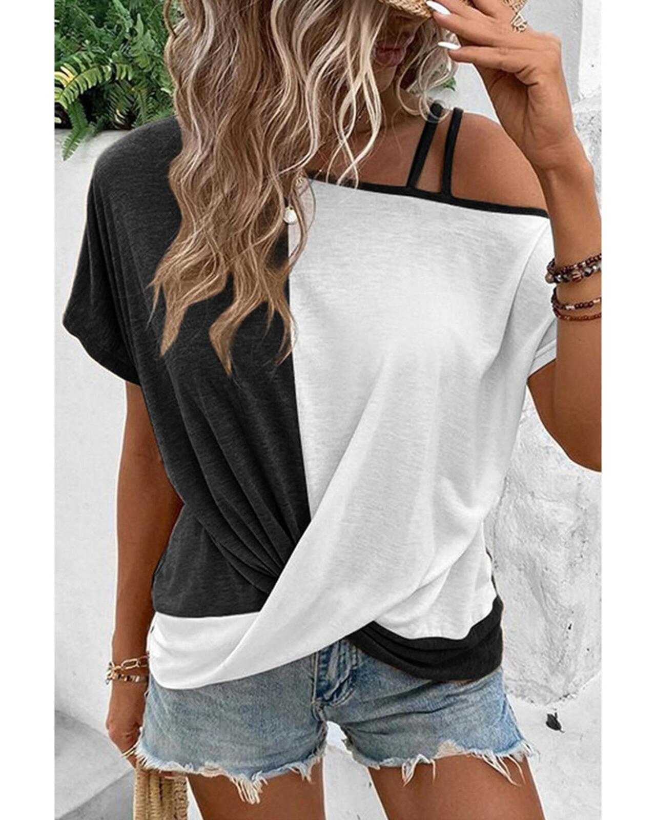 • Stylish and trendy asymmetric colorblock top