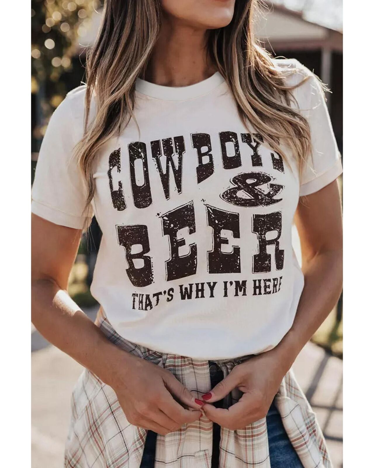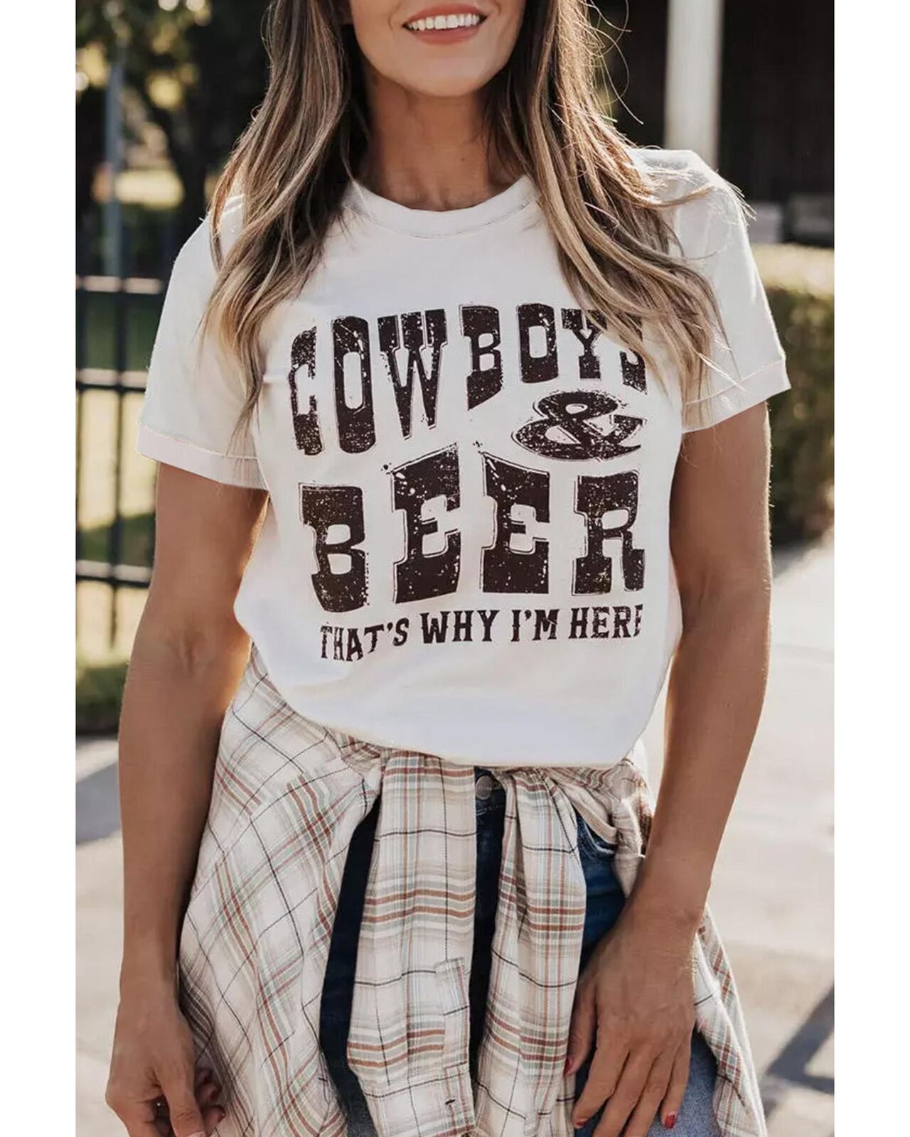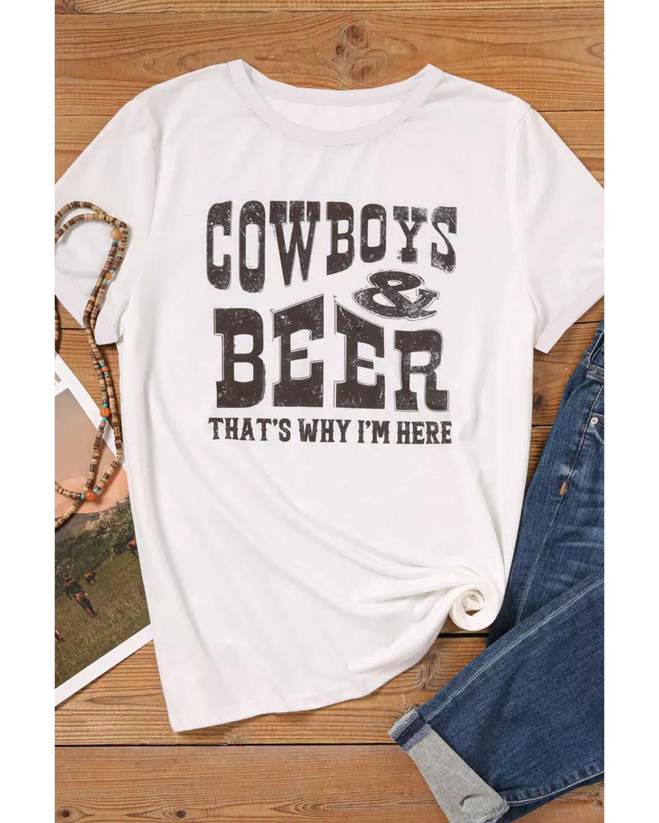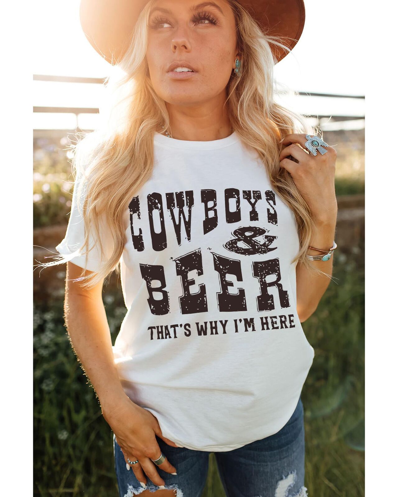 • Quality COW BOYS & BEERS Letters Graphic T-shirt