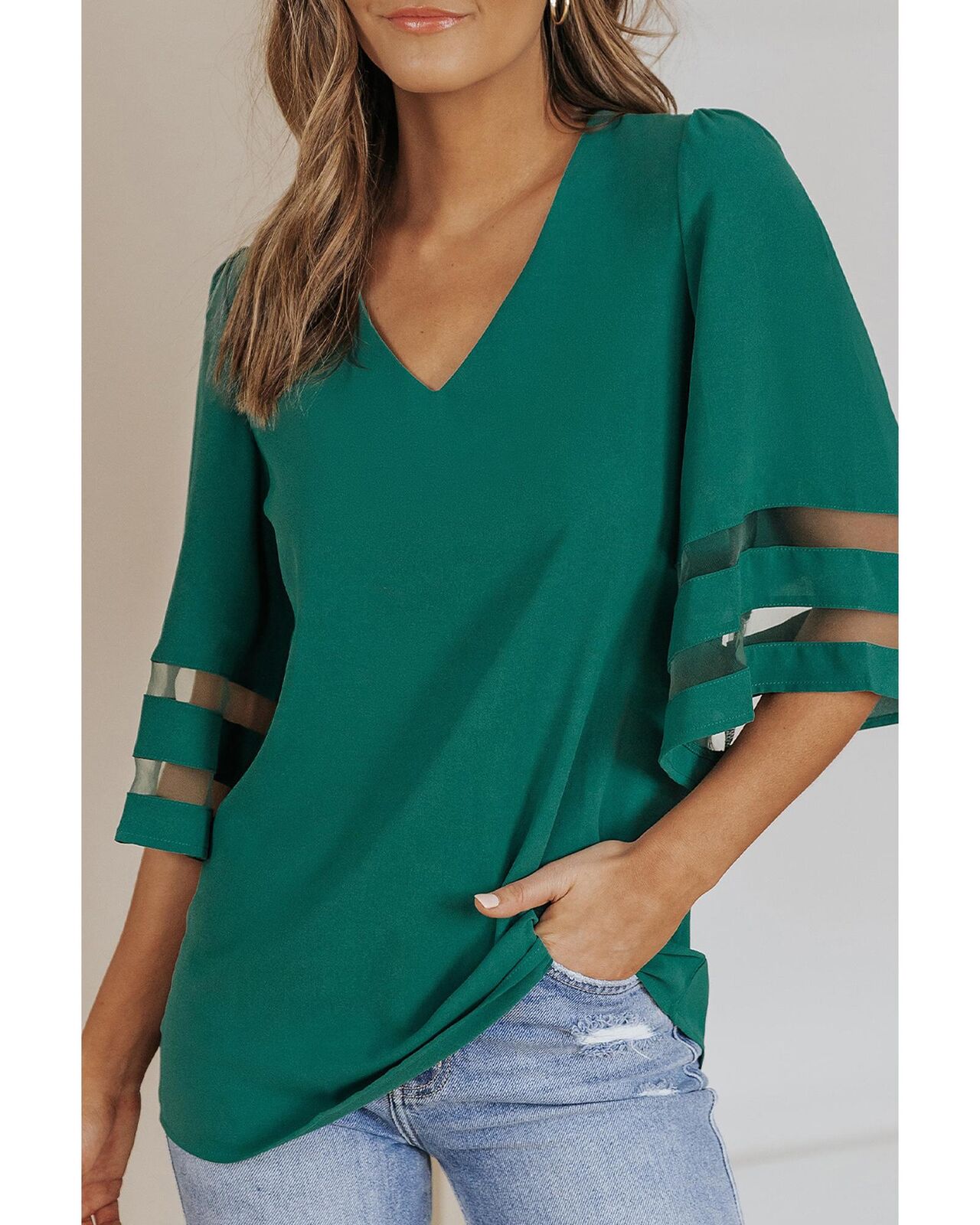 • Flare Sleeve V Neck Loose Blouse