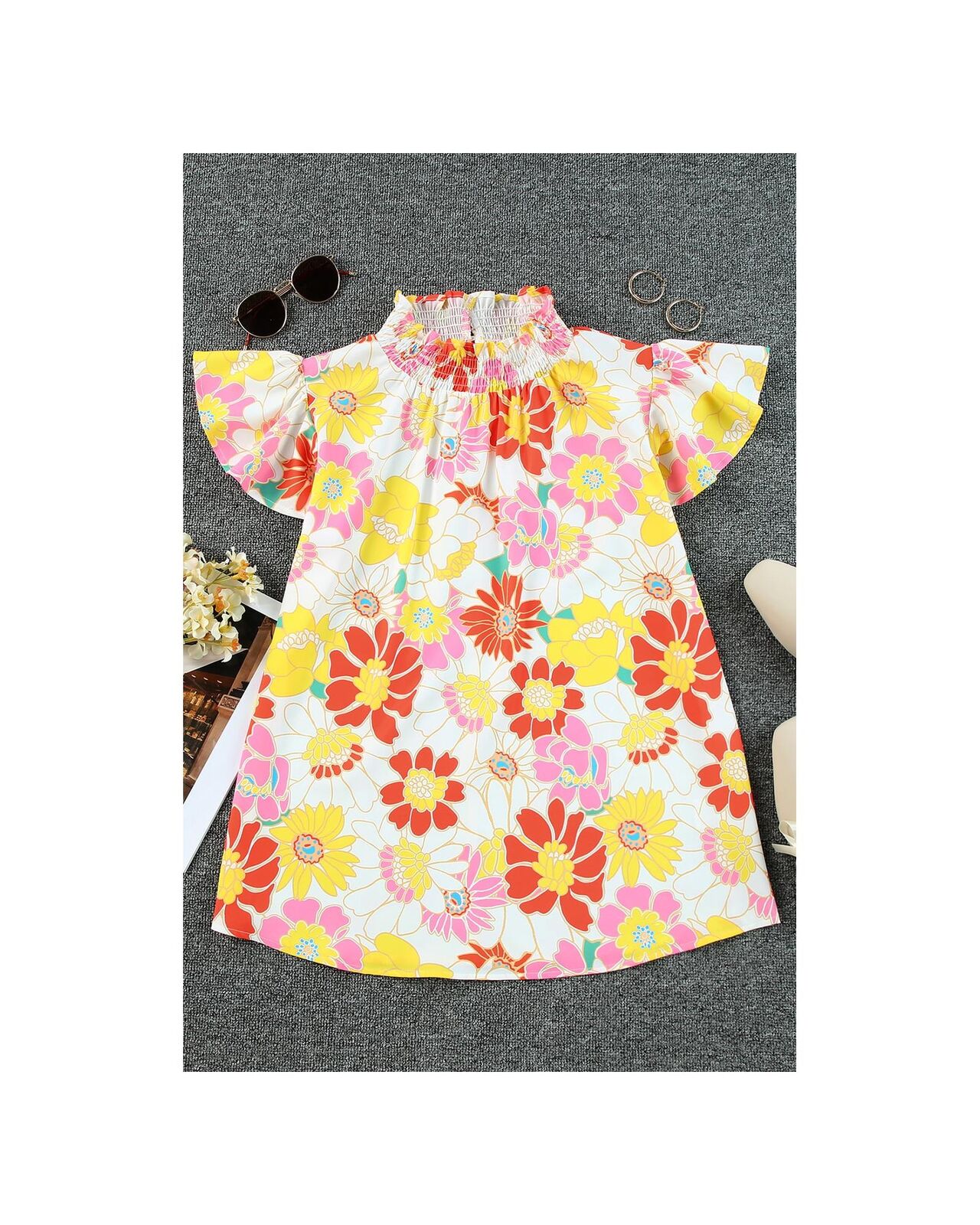 • Vibrant multicolor floral print