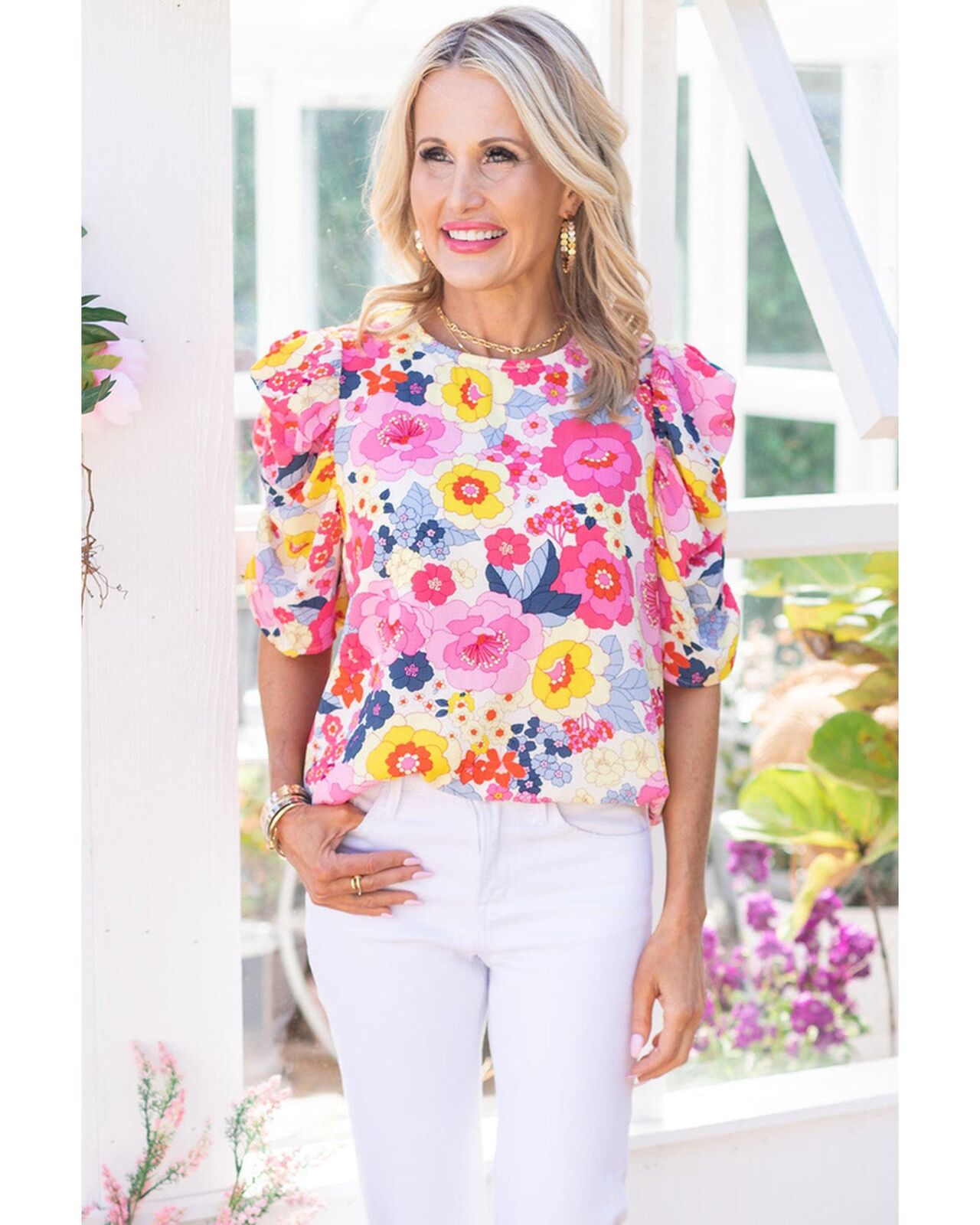 • Luxurious Ruched Puff Sleeve Floral Blouse