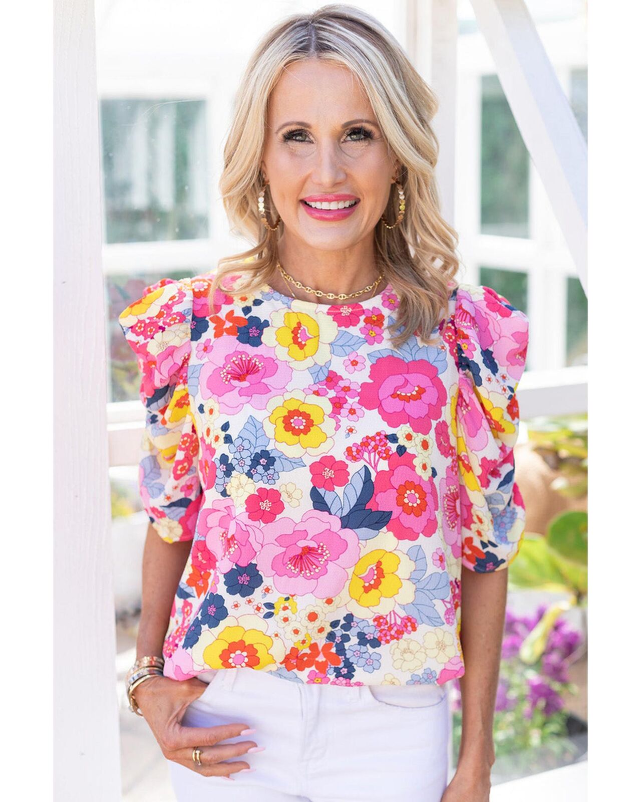• Luxurious Ruched Puff Sleeve Floral Blouse