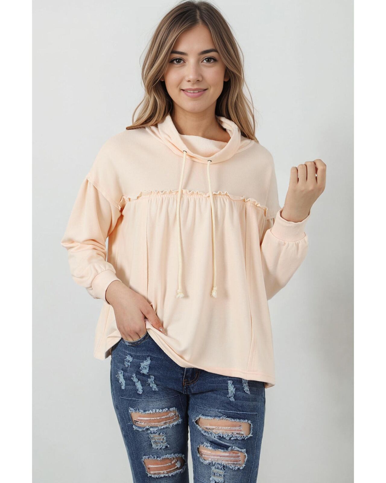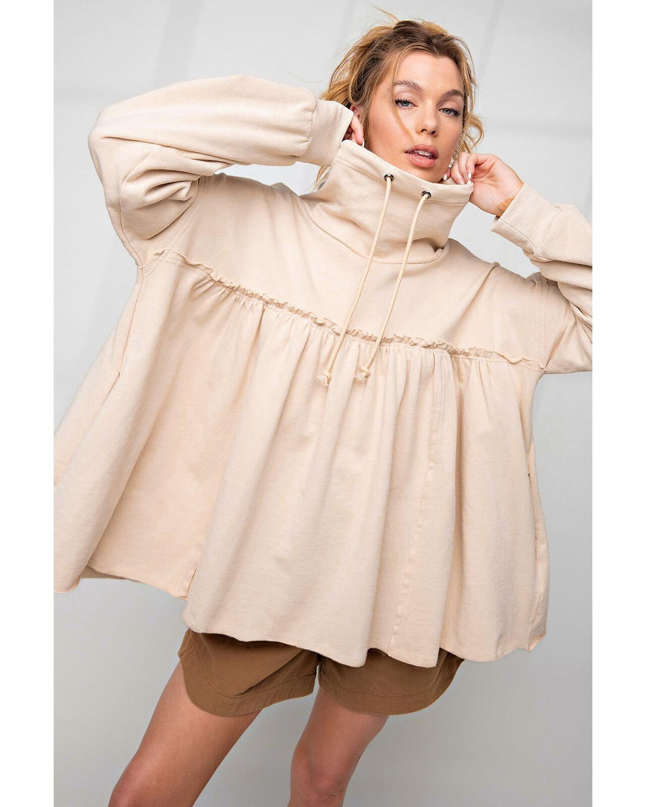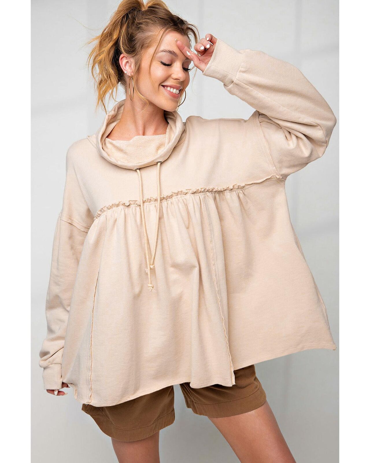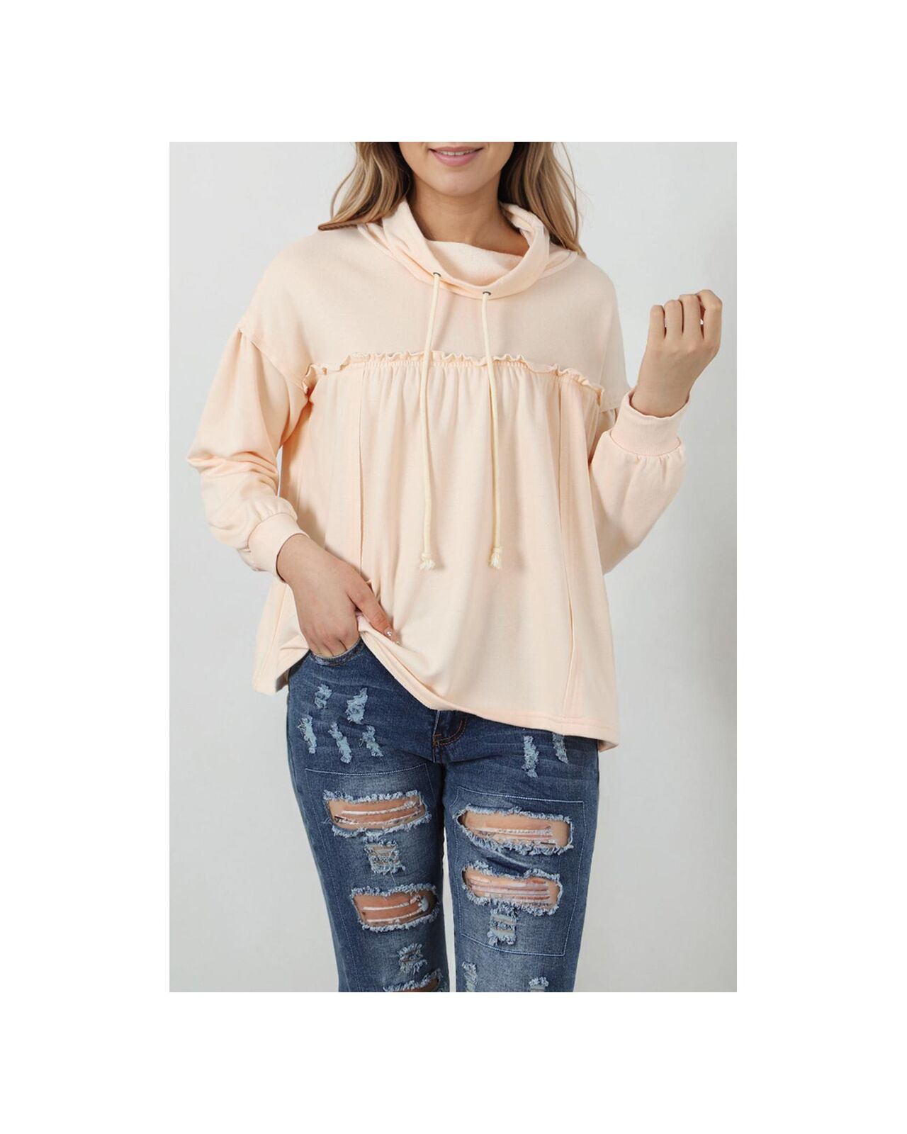 • Beige frill exposed seam cowl neck oversized sweatshirt