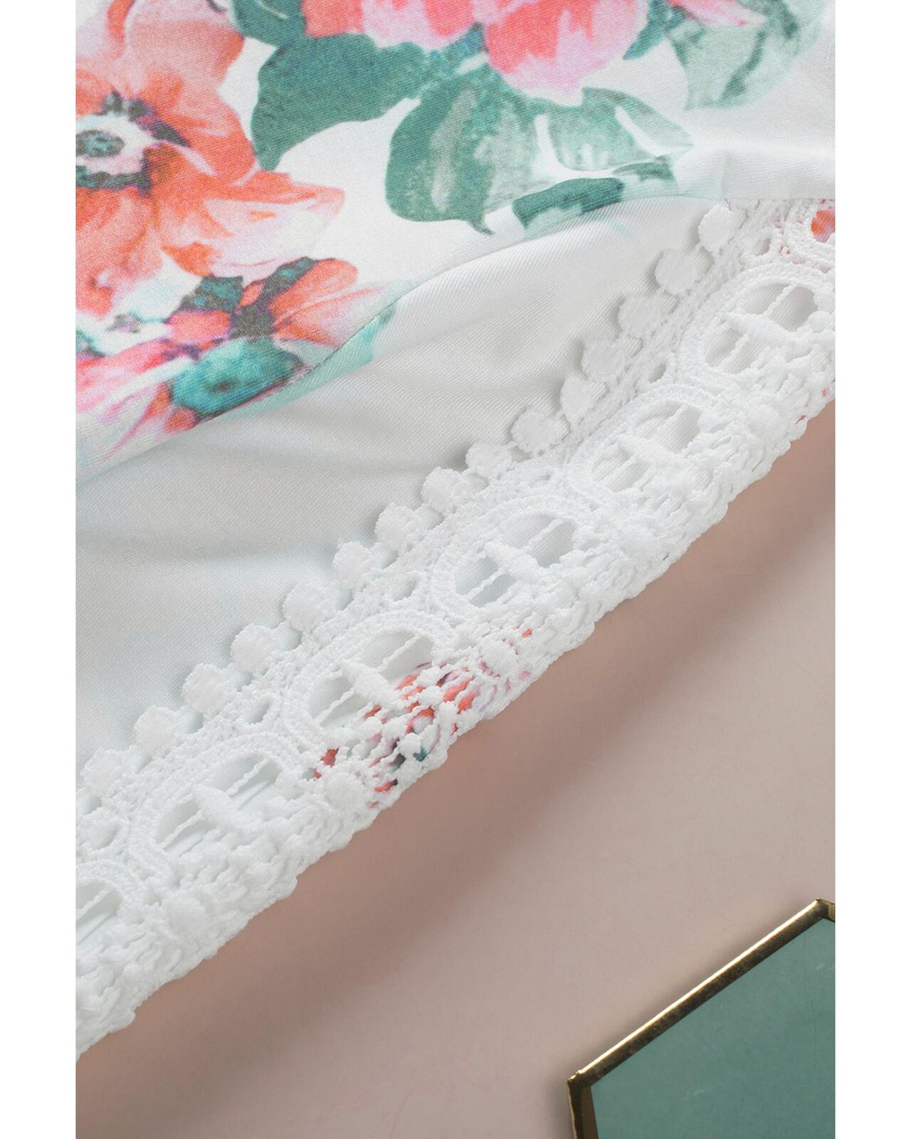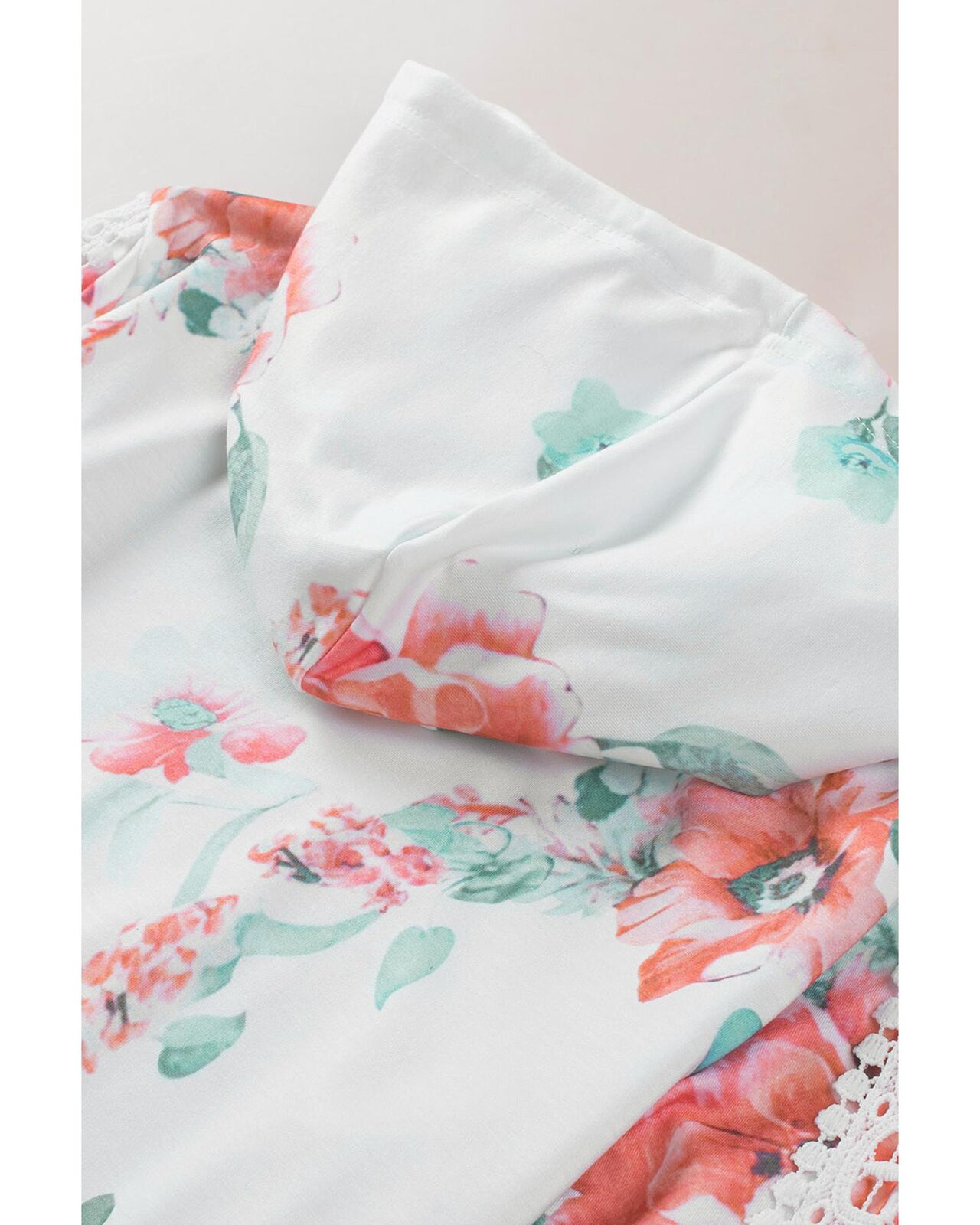 • Stylish and feminine Floral Print Lace Contrast Long Sleeve Hoodie