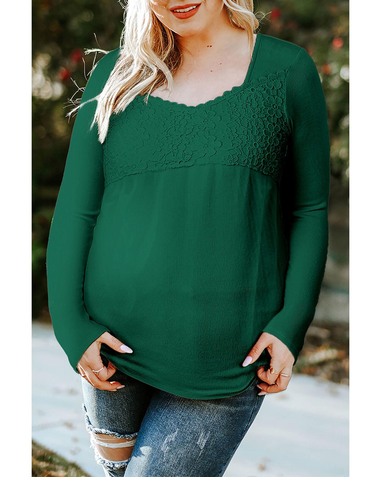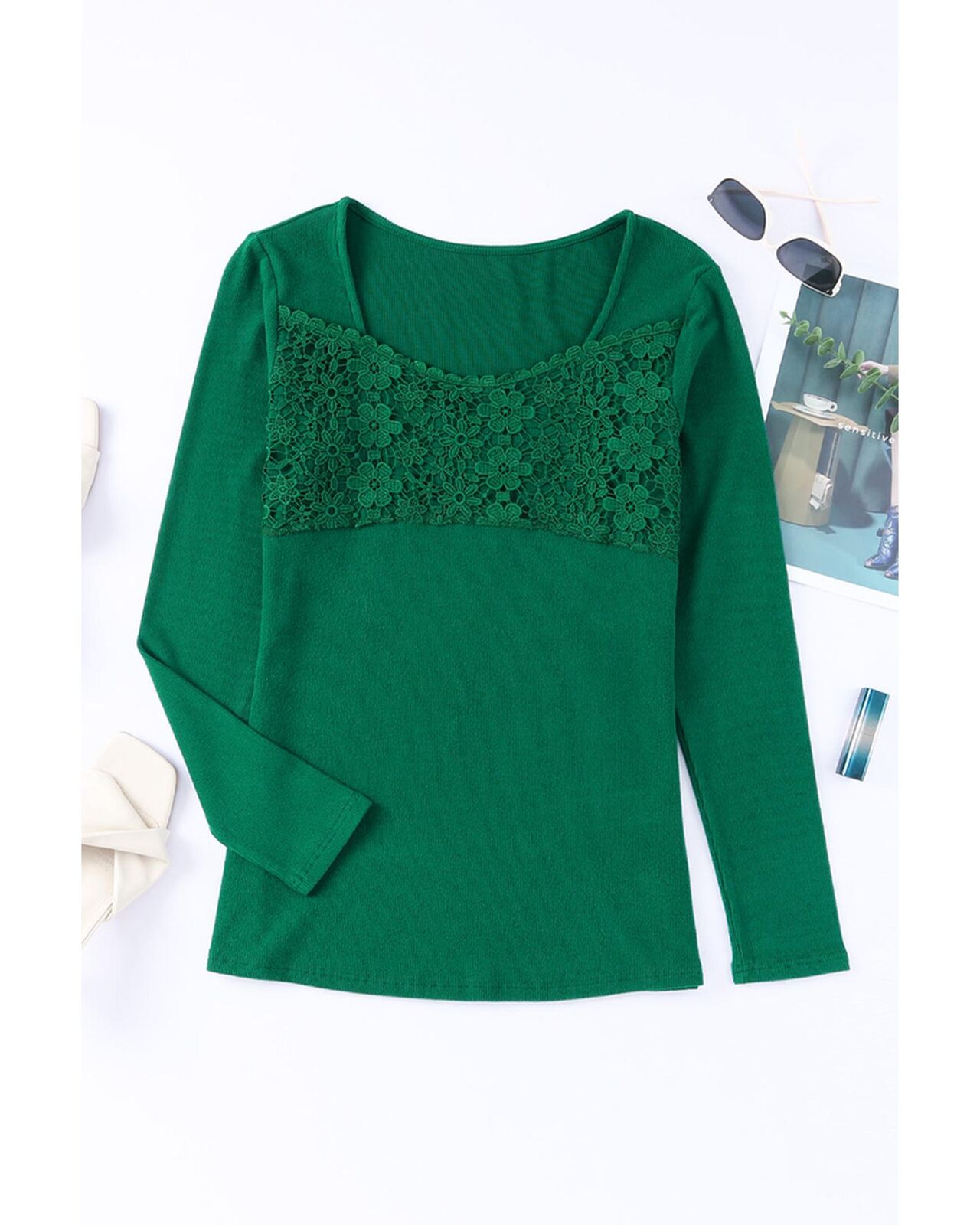 • Elegant and stylish Lace Crochet V Neck Long Sleeve Top