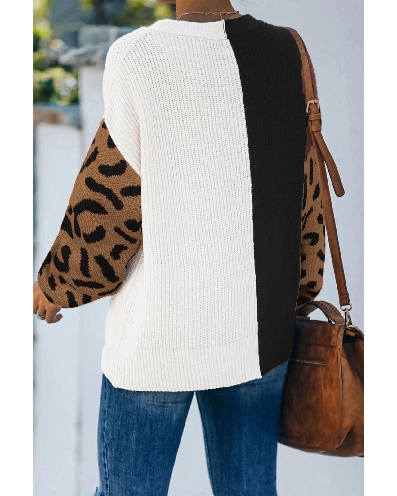 • Colorblock sweater with leopard print sleeves