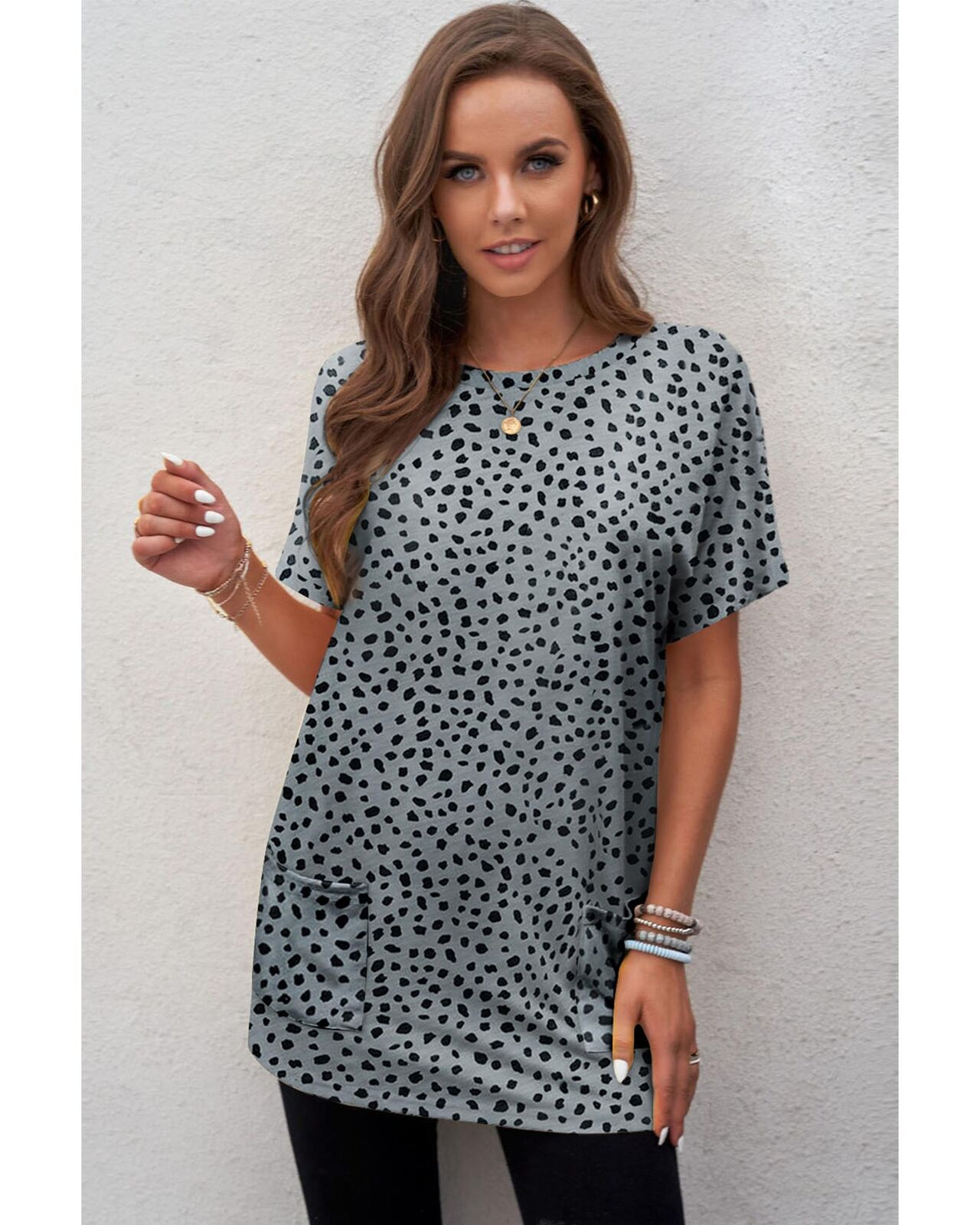• Stylish and versatile Leopard Print Side Pockets Tunic Top