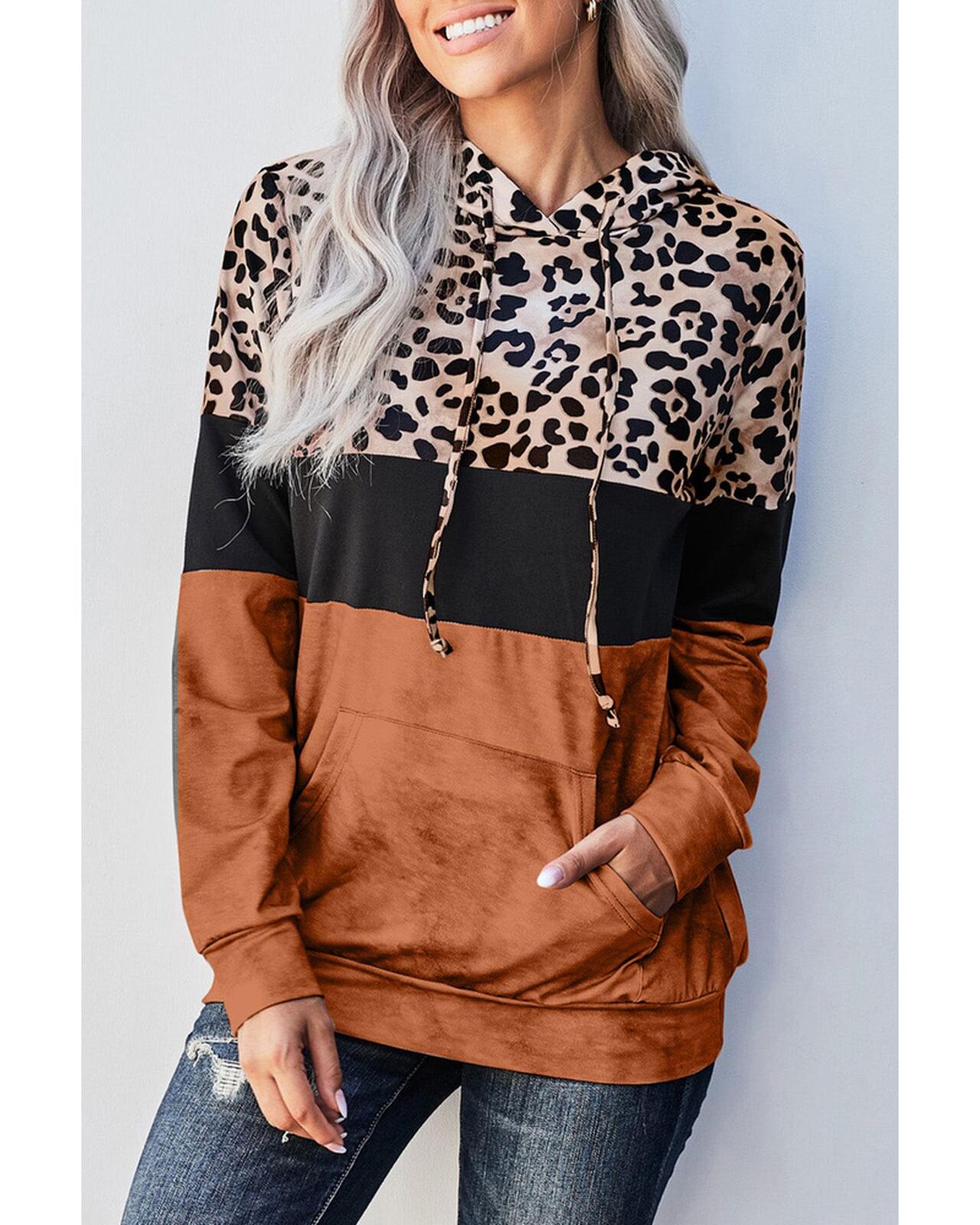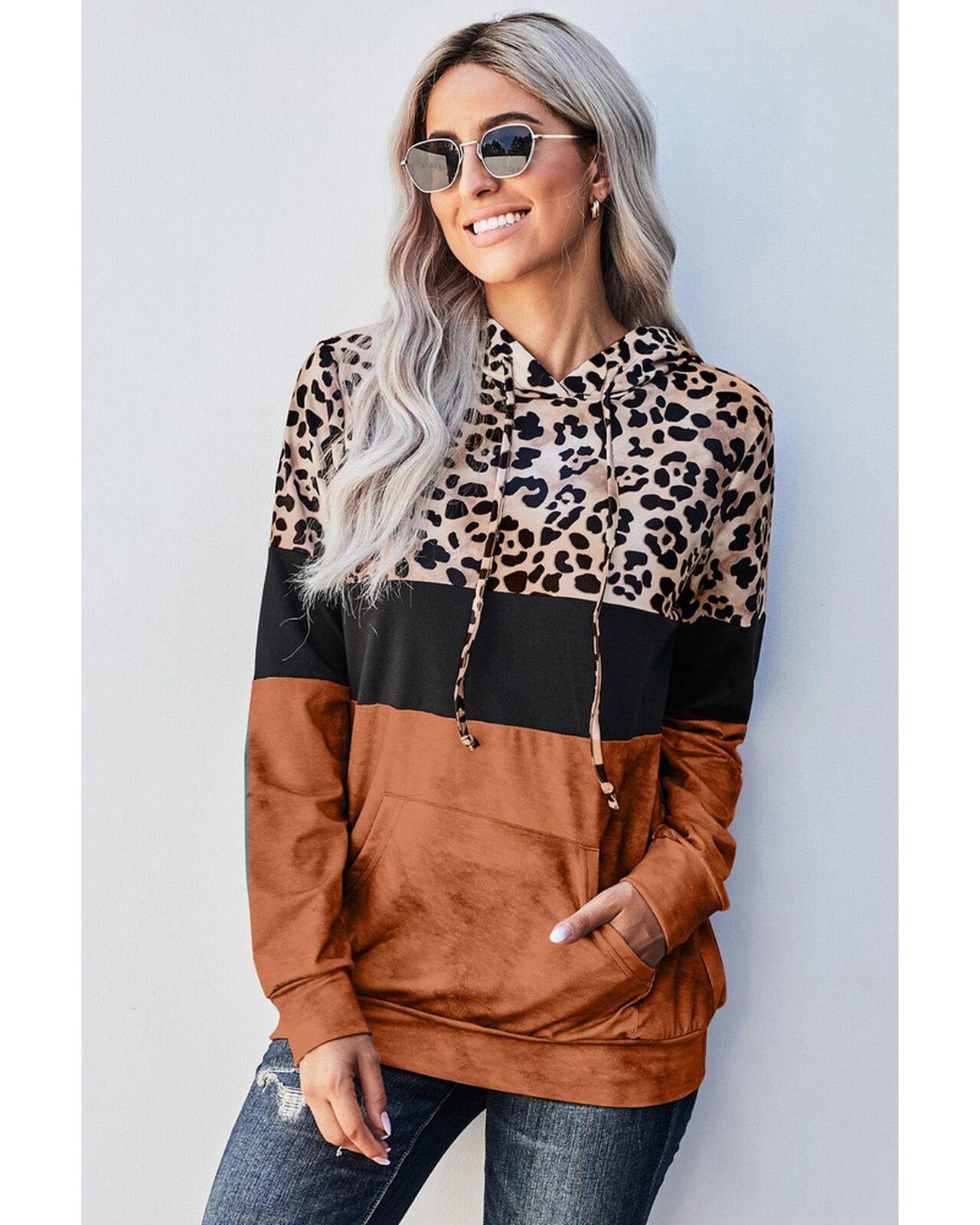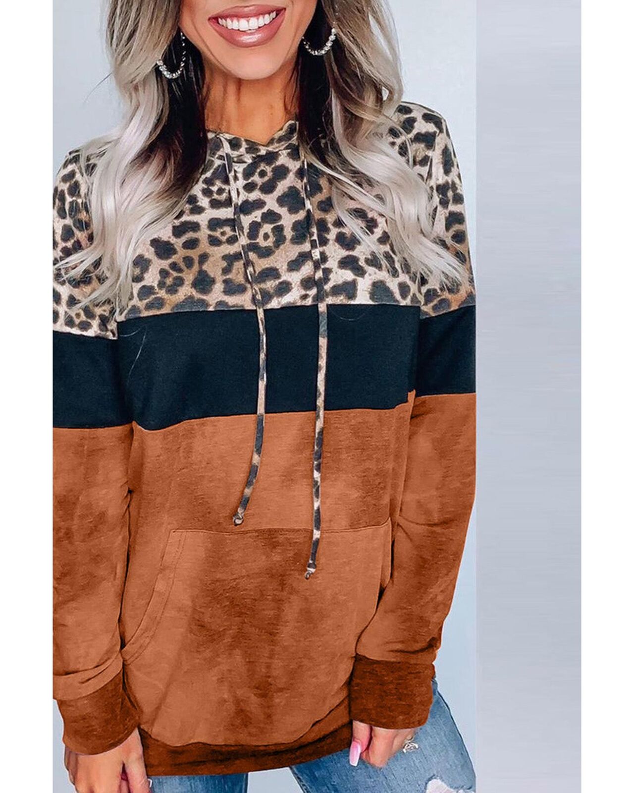 • Leopard Tie Dye Colorblock Hoodie