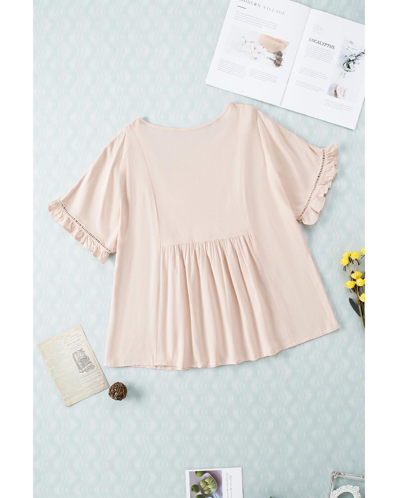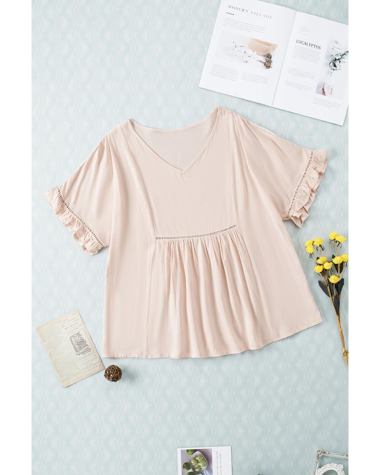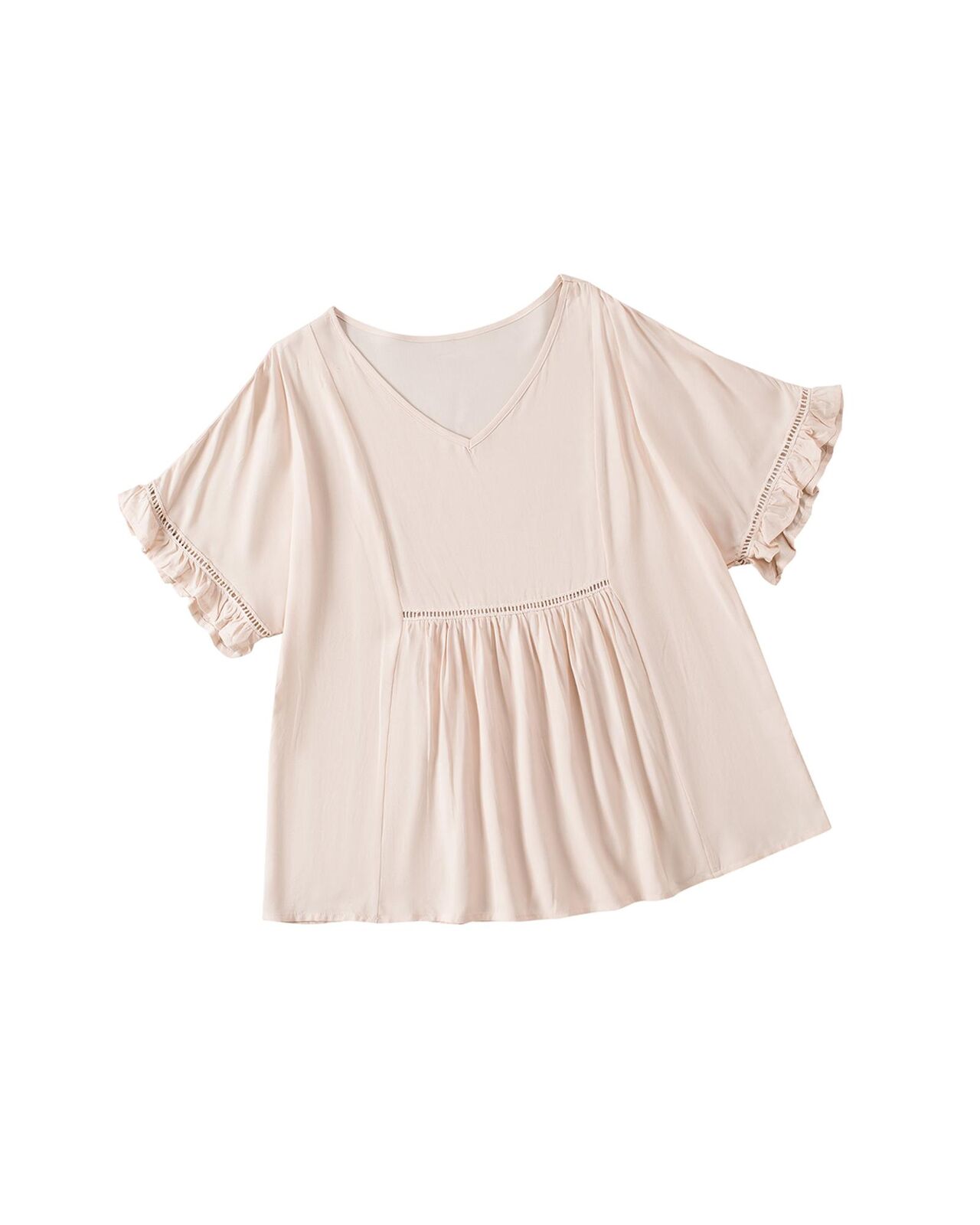 • Stylish and feminine Ruffled Lace Detail Loose V Neck Top