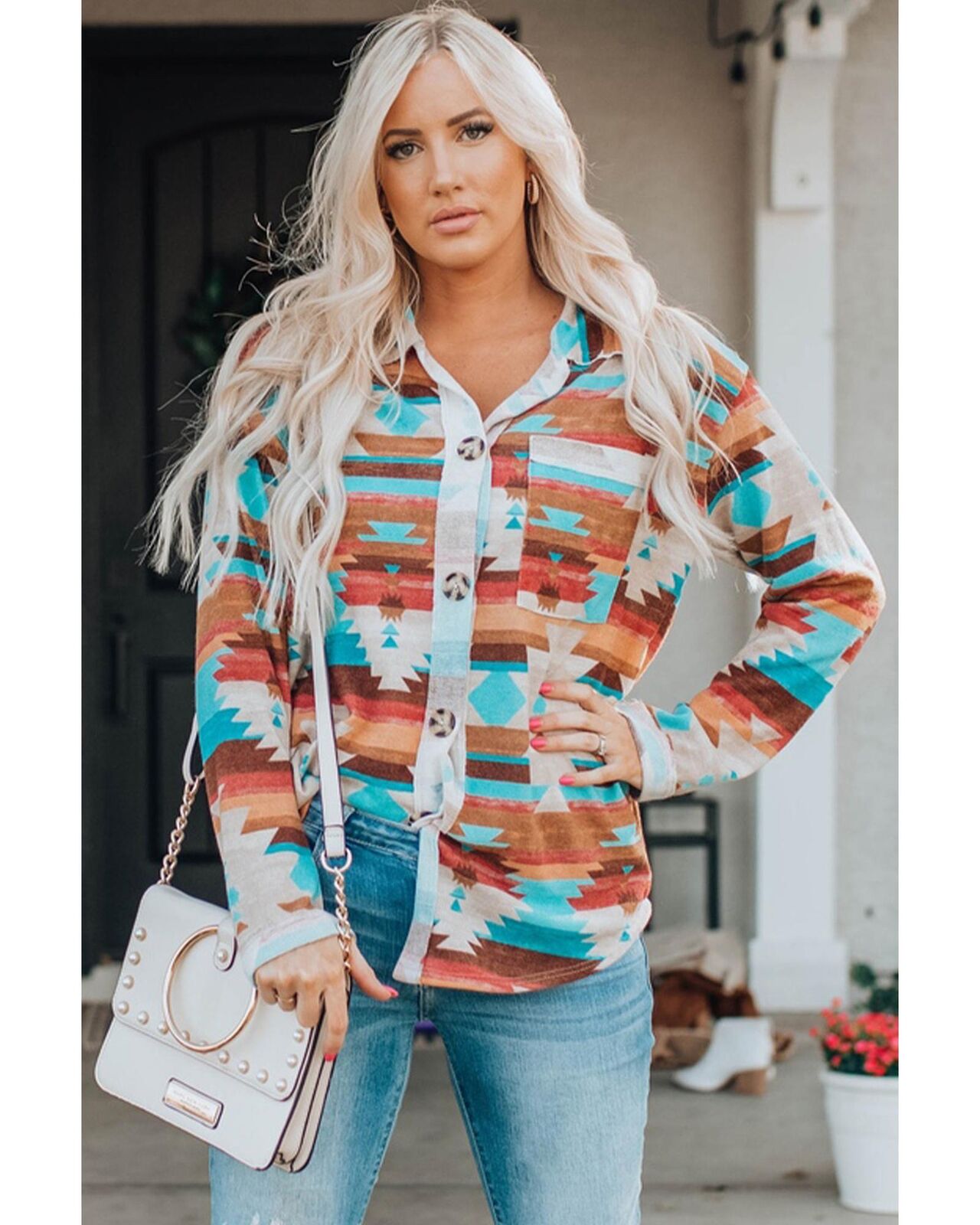 • Multicolor Aztec print adds a vibrant touch to your outfit