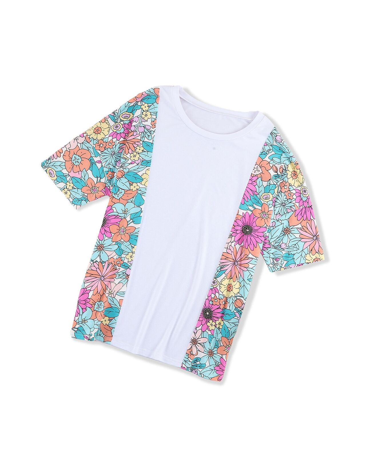 • Stylish and trendy Floral Print Patchwork Short Sleeve Top