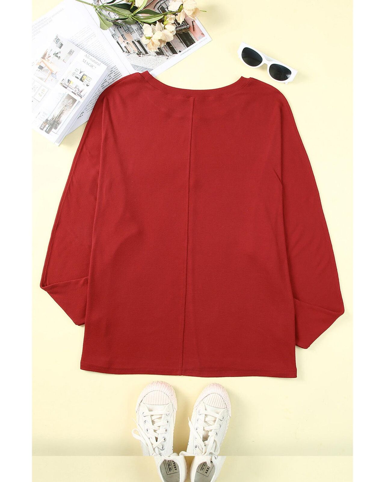 • Stylish and versatile Solid Color Patchwork Long Sleeve Top